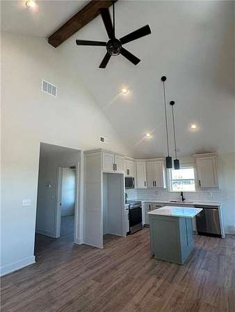 - Custom Cabinets, Kitchen Island, Painted Cabinets, Pantry, Vaulted Ceiling(s), Walk-In Closet(s)
