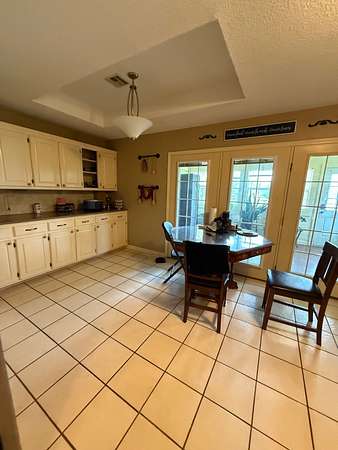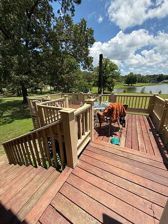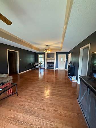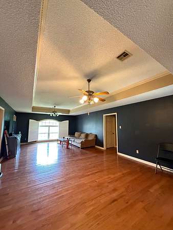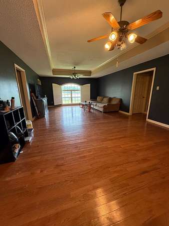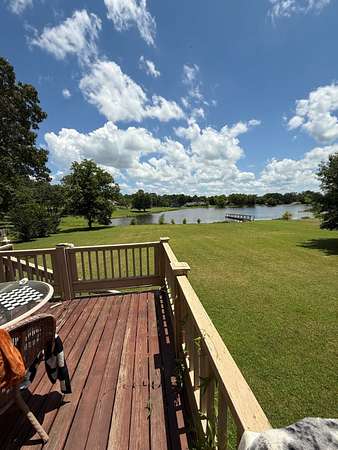 Est $1,444/moBeautiful 3BD/1.5BA lake front contemporary home with 3 car garage. This home is located in the beautiful Timber Lake Estate addition in Charleston, and features a large wood deck that overlooks the lake. This home has a large living room with a beautiful tray ceiling, double ceiling fans and a gas fireplace. There is also a very nice sunroom that leads to the back deck. The laundry room includes the washer and dryer, a shower, and a toilet and the main bathroom has a very nice jacuzzi tub. Refrigerator, stove, microwave, washer and dryer are all included! This property consists of 1.6 acres m/l and the owner can get a permit to build a boat dock. Property being sold as is.