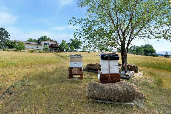 Active on a right of first refusal basis with contracted buyer in place. Contact listing agent for details. Welcome to your own private haven nestled on a serene 2.4-acre cedar-fenced, treed lot — the perfect blend of rustic charm and modern convenience. This 5-bedroom, 3-bath, 2,812 sq ft home offers breathtaking views and is just a short walk to a 20-acre foothills open space ideal for evening horseback rides or peaceful sunset strolls. Enjoy a lifestyle of self-sufficiency and natural beauty with raised garden beds, returning seasonal flowers and fruit-bearing trees (including cherry, plum, golden locust), and an variety of established landscaping including Russian sage, salvia, lilac bushes, spruce trees, and aspens. A thriving beehive and an adorable chicken coop with run complete your backyard farm-to-table experience. There’s also a fenced pasture (bring your horses!) and a 48” x 18’ Intex pool with a sand pump for relaxing summer days. Inside, the home is equally impressive: all stainless steel kitchen appliances, XL Samsung Bravo 4.6 washer and dryer included in sale, wet bar, Italian porcelain tile custom tile flooring, walkout lower level, central A/C & attic fan, 2 wood burning fireplaces, and an attached oversized garage with plenty of storage and workspace areas. Recent updates include a new roof, seamless gutters, 50-gallon hot water heater, and concrete driveway pad. Blacktopped driveway and spacious stoned parking area for all your toys. Whether you’re soaking in the jetted bubble bath after a trail ride or enjoying morning coffee with a mountain view on the back deck, this unique property has everything you need to live your dream lifestyle. Located just 13 minutes from Berthoud’s historic downtown shops, breweries, and new community rec center, and a short drive to Longmont and Boulder, this property offers both tranquility and convenience. Don’t miss this rare opportunity to own a slice of Colorado countryside with all the comforts of home.