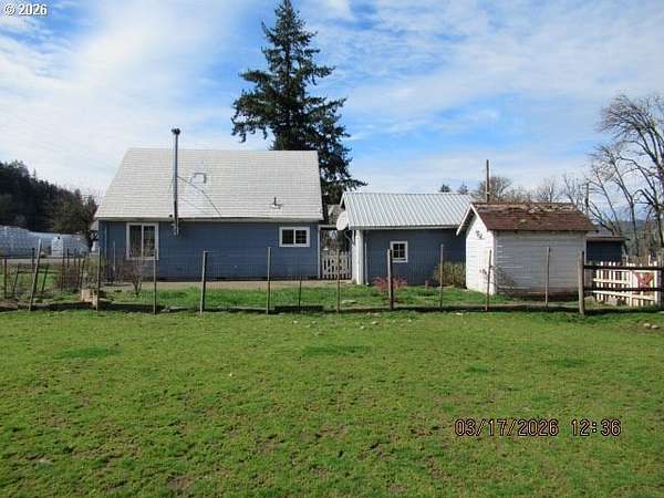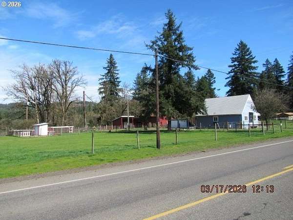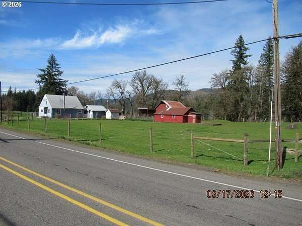 Est $2,488/moLyons address but is closer to Mill City. Right across the road from Frank Lumber Co. +- 5 acres. Fenced and crossed fenced. 2 barns, machine shed, sheds & chicken coop. Plenty of room for all your animals and toys. Primary bedroom on main level. Cozy woodstove in living room. Needing a little TLC but well worth it. Located in the UGB. Buyer to complete own due diligence on use and future use. Buyer to verify possible future use due to the zoning.