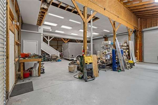 Prime 2.55+/- acre property with custom-built barn/shop offering exceptional functionality and versatility. Located on highly visible Georgia Highway 81 in Oxford, this property provides excellent road frontage and accessibility. The main feature is the custom shop/barn equipped with six (6) roll-up doors (four front, two rear), allowing convenient drive-through capability. The building includes concrete flooring, water service, and two overhead electric heaters for year-round use. Upstairs loft area features finished space with hardwood floors and tile, HVAC, a small bathroom, two private offices, and cabinetry with sink/kitchen area-originally utilized as office space. Chair lifts installed on the stairway for added accessibility. Ideal for contractor operations, automotive or mechanical use, storage, workshop space, small business headquarters, or hobbyist use. Ample acreage provides additional parking, expansion potential, or outdoor storage options. Unique opportunity to own a well-equipped shop property with acreage in a convenient and growing area. Special conditions apply.