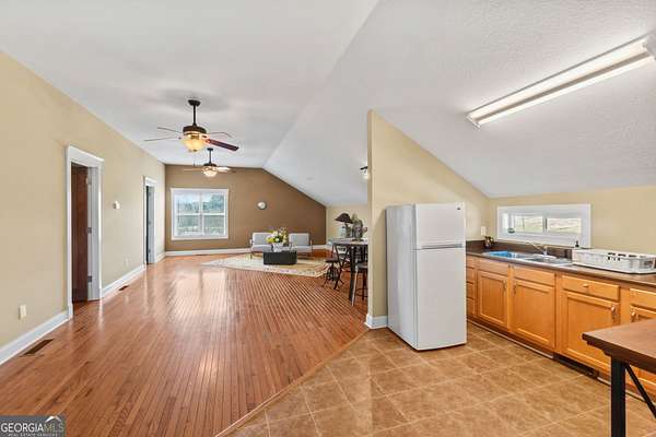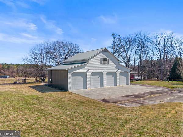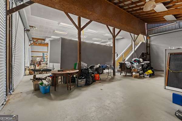 Prime 2.55 acre property with custom-built barn/shop offering exceptional functionality and versatility. Located on highly visible Georgia Highway 81 in Oxford, this property provides excellent road frontage and accessibility. The main feature is the custom shop/barn equipped with six (6) roll-up doors (four front, two rear), allowing convenient drive-through capability. The building includes concrete flooring, water service, and two overhead electric heaters for year-round use. Upstairs loft area features finished space with hardwood floors and tile, HVAC, a small bathroom, two private offices, and cabinetry with sink/kitchen area-originally utilized as office space. Chair lifts installed on the stairway for added accessibility. Ideal for contractor operations, automotive or mechanical use, storage, workshop space, small business headquarters, or hobbyist use. Ample acreage provides additional parking, expansion potential, or outdoor storage options. Unique opportunity to own a well-equipped shop property with acreage in a convenient and growing area. Special conditions apply.