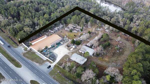 Opportunity of the Century! This 9.29 Acre parcel is Zoned IL (Light Industrial) and is presently being used as Commercial Retail space through the use of a Special Use Permit. The property accounts for roughly 925ft of highway frontage along US Highway 17, which hosts an Annual Average Daily Traffic count of 13,800 vehicles per day! Possibilities are endless with this 13,000+ square foot Concrete Block Building already equipped with 3-Phase Power! As if this wasn't enough, there are two additional 2,400 square foot (40ft x 60ft) warehouse buildings and 20 storage containers on the property for additional storage. Ideally located between Jacksonville, Gainesville, St Augustine, Palm Coast, & Ocala. Seller-financing available with 25% cash down, amortized over 30 years at 5.5% APR with a 5-year balloon.