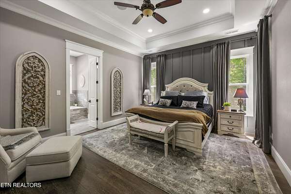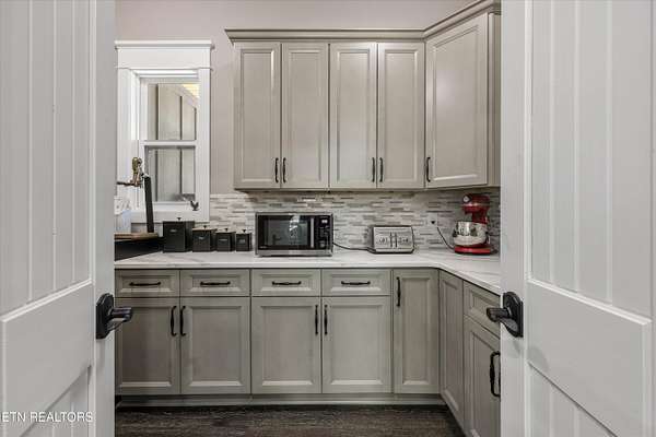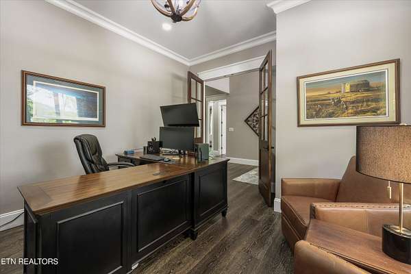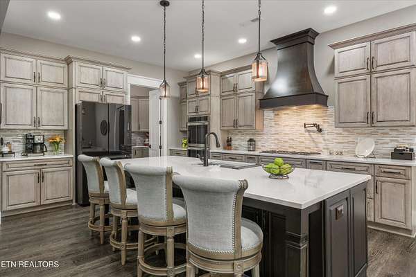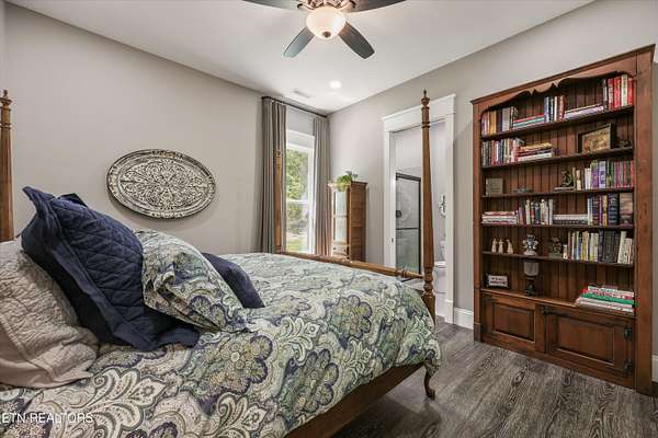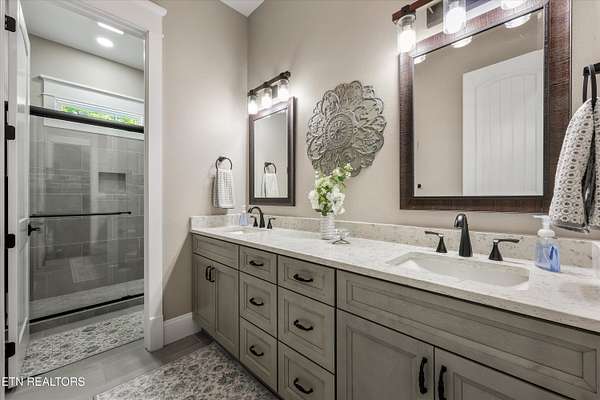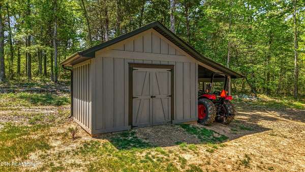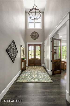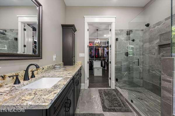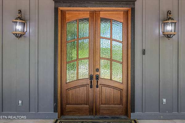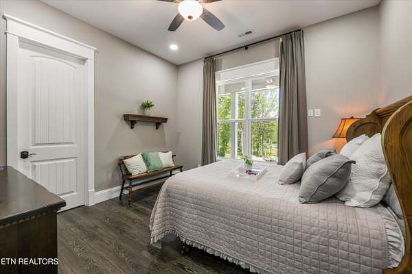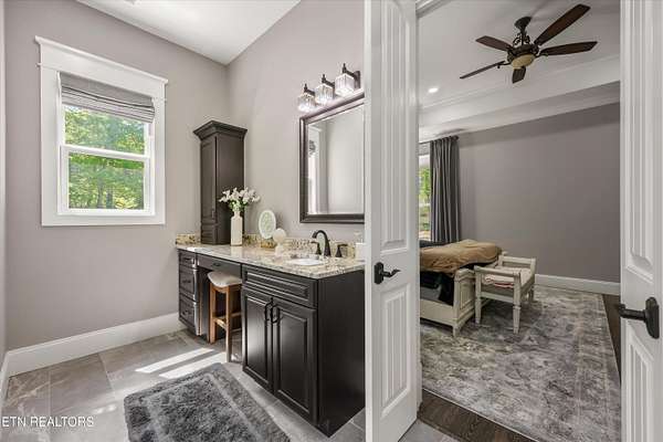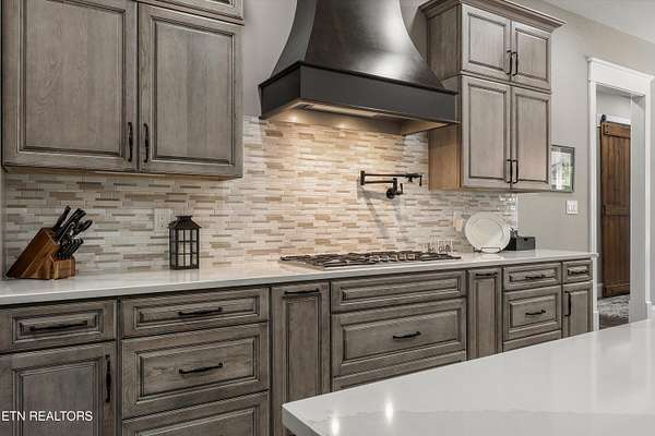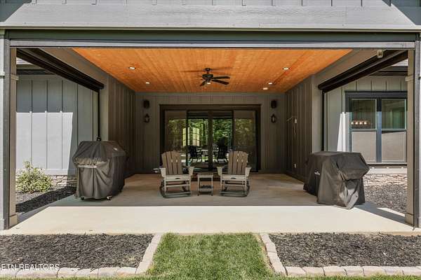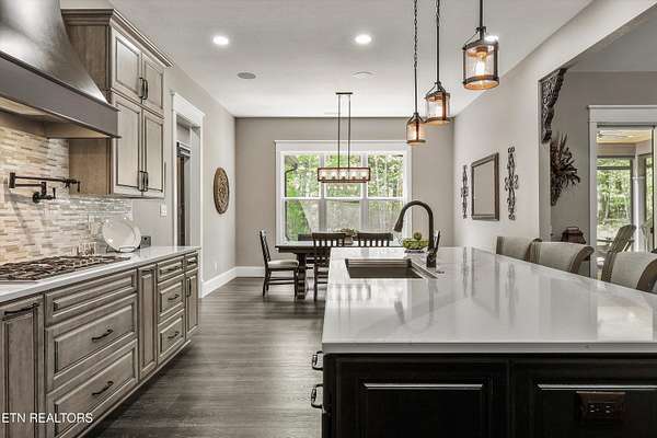 Nearly new ranch-style traditional home, completed in 2025, sits on 12.5 private wooded acres in the desirable Grande Vista Bay Community in Rockwood, Tennessee. The property offers a peaceful, secluded setting with convenient access to upscale amenities, including a clubhouse, pool, pickleball courts, and community marinas. A scenic walking trail through the woods leads directly to these features, while nearby Watts Bar Lake--spanning 39,000 acres--provides endless opportunities for boating and fishing. Designed with modern living in mind, the home showcases high-end finishes and thoughtful details throughout. The exterior features board and batten Hardie cement siding with stone accents, a circular concrete driveway, an oversized three-bay garage, and a covered front porch with a natural wood ceiling. A spacious 20x20 patio with automatic retractable screens creates the perfect indoor-outdoor living space. Additional upgrades include a whole-house generator, surround sound system, hardwired WiFi access points, and a security system. Inside, the home offers 10-foot and cathedral ceilings, with a trey ceiling enhancing the primary suite. The great room is anchored by a striking 25-foot stone fireplace, while durable luxury vinyl plank flooring runs throughout the main level. The kitchen serves as the heart of the home, featuring a large island, quartz countertops, tile backsplash, walk-in pantry, coffee bar, and high-end stainless steel appliances, including a smart oven and premium 6 burner Thermador gas cooktop. The main-level primary suite includes dual vanities with granite countertops, a whirlpool tub, a tiled walk-in shower, and a spacious walk-in closet with custom organization that connects directly to the laundry room. An office with wood french doors sits just off the foyer. The main floor also includes three additional bedrooms and two full bathrooms, each with quartz countertops and walk-in closets. Upstairs, a versatile bonus room with a full bath provides additional living or guest space. Thoughtfully designed with comfort and functionality in mind, this home offers a perfect blend of luxury, privacy, and modern convenience.
