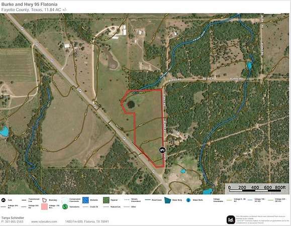 From downtown Flatonia at the intersection of US-90 and TX-95, head north on TX-95 for approximately 3.5 miles. Turn right onto Burke Road and continue for about 0.3 miles. The 11.84-acre property will be on your right, just past the first curve.