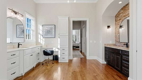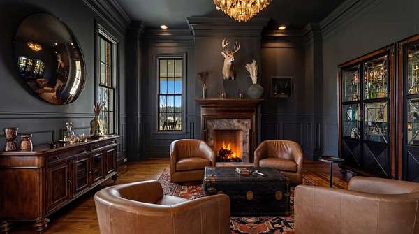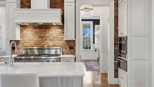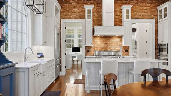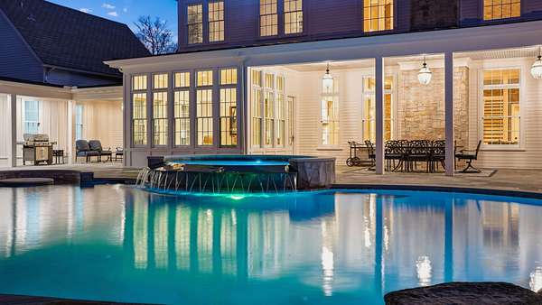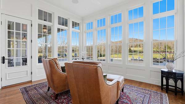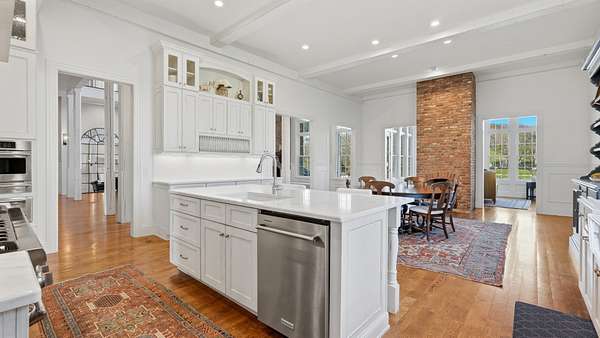 Sunlight pours into a soaring great room with 35-foot ceilings and anchored by one of five fireplaces. The chef’s kitchen, centered around an oversized island, connects seamlessly to an open breakfast area, formal dining room, and morning room — ideal for sipping coffee while watching the sun rise over the pool and pond. A refined den/whiskey room offers a perfect retreat to unwind at the end of the day, or take in a movie in the nearly 600sf media/recreation room, also ideal for game-day hosting. The main level primary suite is a serene retreat with it own fireplace, sitting room with sweeping views, and spa-like bath. Upstairs are four additional ensuite bedrooms, a den, an office, and true to Southern style, two climate controlled sleeping porches. An elevator quietly connects all levels, including a lower level with a full gym, and nearly 1000 sf of unfinished storage space.