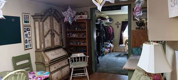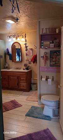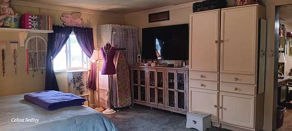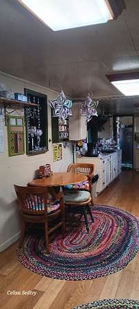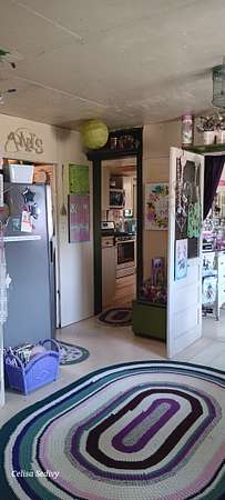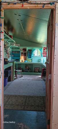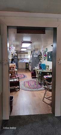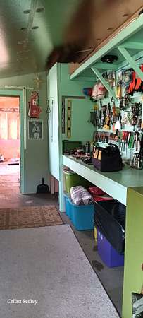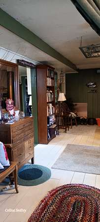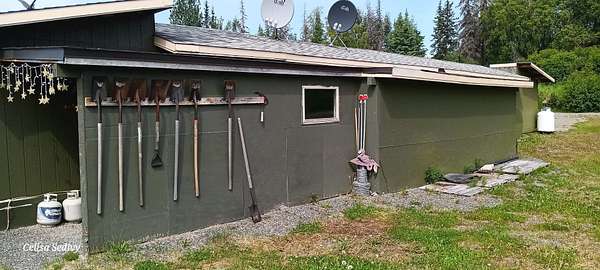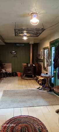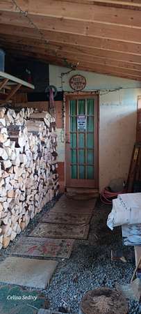 Enter the home through the arctic entry, then into the wood stove and sitting rooms. Moving on to the custom kitchen and dining areas. The kitchen is equipped with a built-in venting microwave, an additional gas cook top and Oak floors. Behind the kitchen you will find the pantry and utility room, the laundry closet is located by the back door next to the generously sized bathroom with a corner shower and a claw foot tub to soak your stress away. The oversized bedroom is located at the opposite side of the home.