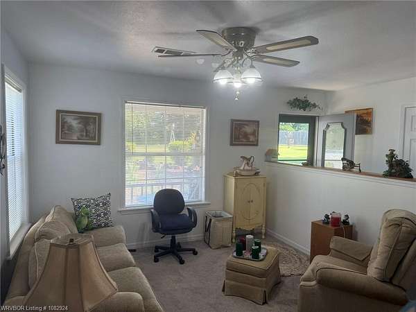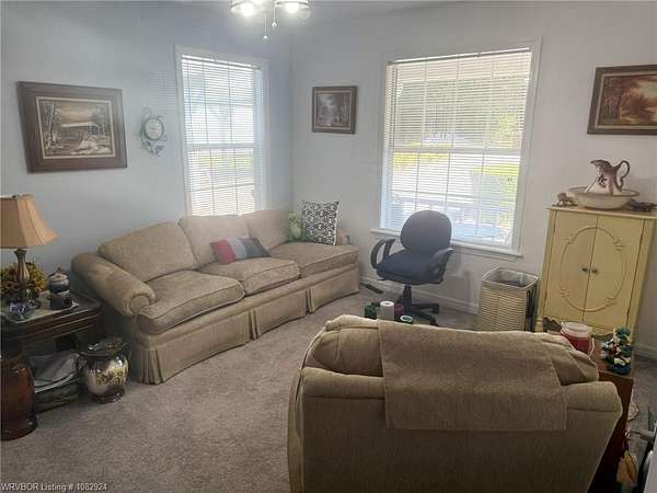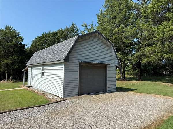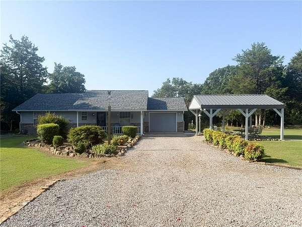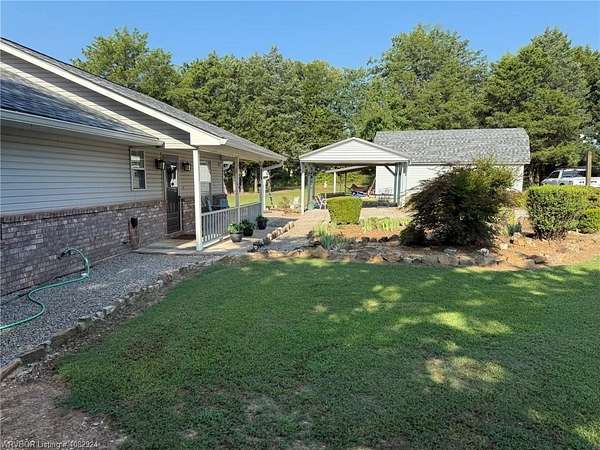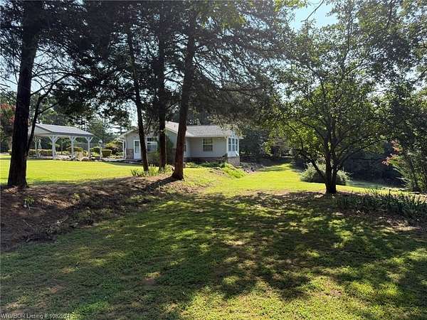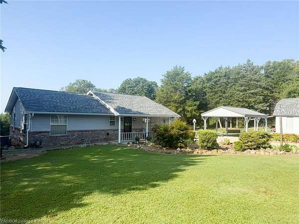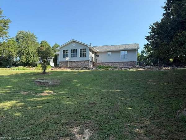 5 gorgeous, private acres with this 2-3 bedroom custom built home, 2.5 bathrooms, covered outdoor entertainment area, 2 car garage, plus large 16x30 shop with upstairs storage. This home has been lovingly maintained and features beautiful rock details and landscaping. The interior features 2 master bedrooms with en suite bathrooms, 2 living spaces (or use 1 as an extra bedroom). New 2025 CH/A with backup gas heat, water heater replaced 2024. The front acreage is cleared while the back acreage features mature trees and woods for the wildlife enthusiasts. With some clearing, Mount Magazine and a large portion of the River Valley provide magnificent views behind this beautifully unique home, less than 4 miles from town.