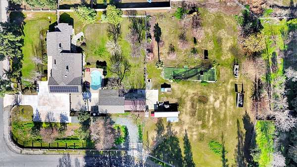 Country living meets city convenience! Discover this extraordinary 4-bedroom, 3-bath estate situated on a sprawling 2.47-acre lot where no expense was spared. With over 3,600 sq. ft. of living space, this home offers an exceptional layout designed for both comfort and entertainment. Upon arriving through the custom $138,000 wrought iron gated entrance, your lead down a newer concrete driveway to a spacious 3-car garage. Inside you will find an extraordinary chef's kitchen featuring a Thermador 36' range and built in refrigerator. An additional oven, built in microwave, warming drawer, 2 refrigerator drawers and a Miele Cappuccino maker. This kitchen is designed for those who truly enjoy entertaining. Inside the large living room your greeted with an abundance of light through the plantation shutters as well as the custom stone fireplace. Wood floors lead you to the spacious four bedrooms and main bathroom. The primary bedroom offers an expansive space with its own mini split system, as well as French doors to the rear yard. Step into the spa like primary bathroom that offers his and hers vanities and closets, jetted tub, and a large walk-in shower with dual shower heads as well as a rain shower head. The butler's pantry / laundry room offers additional storage, dishwasher, built in microwave, and room for an additional refrigerator along with another bathroom and walk in shower. Two tankless water heaters provide endless hot water, not to mention the owned solar system Step outside to your own private oasis featuring a large mancave / pool house with overhead door and built in bar, in ground swimming pool, mature landscaping, with addition space to create whatever your imagination desires. The rear area of the property can be accessed by its own automatic gate as well as offering a large covered rv storage area off the mancave.