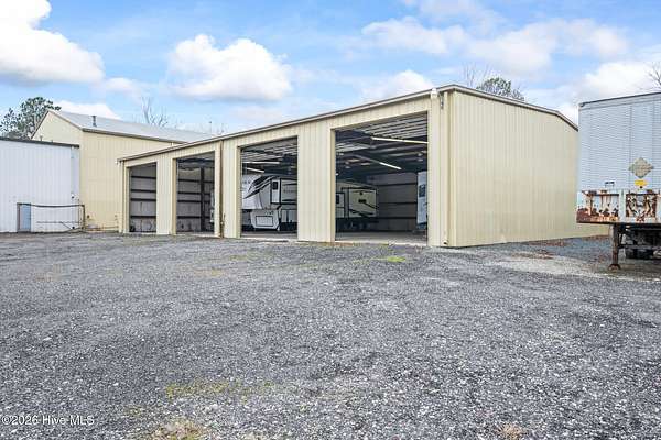 Positioned along NC Highway 53 just outside Burgaw, this 12.69 +/- acre property presents a rare opportunity to own a sizeable tract in the growing Pender County market. The site includes approximately 1.5 +/- acres improved with two warehouse-style buildings totaling about 13,200 +/- square feet, along with 11.19 +/- acres of additional land offering space for expansion, storage, or future improvements. The buildings feature open interior space, high clear heights, and multiple overhead doors, providing flexibility for a variety of potential uses. With direct frontage on a major regional roadway and convenient access to Interstate 40, the property allows for easy connectivity to Wilmington and the surrounding Cape Fear region. Special note this property is located in a FEMA special flood hazard area.