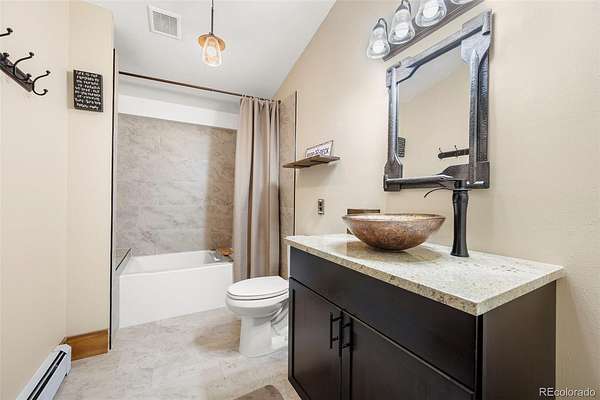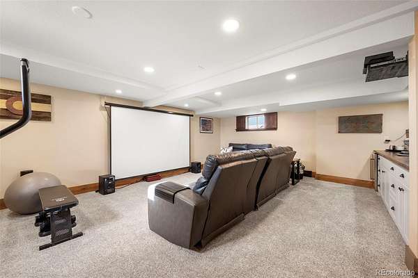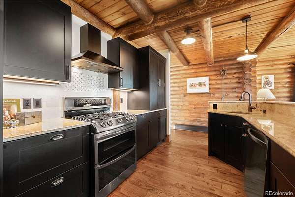 This home has been thoughtfully upgraded from top to bottom, including a completely renovated kitchen, new appliances, fully finished basement, new flooring, high-end bathrooms and extensive landscaping. The chef-inspired kitchen is a showstopper, featuring a massive granite island, custom cabinetry, walk-in pantry with a pass-thru garage grocery door, and a hidden coffee station. The main floor boasts gleaming hardwood floors, a spacious mudroom with a dog wash station and large windows that frame legendary mountain sunsets. Stay cozy all winter with two wood-burning fireplaces, a pellet stove and radiant baseboard heating. Upstairs you'll find a private primary suite featuring its own deck and fireplace. There's a spacious loft area, two additional bedrooms, guest bathroom and laundry. The finished basement is designed for entertainment with a wet bar, movie room, game area, oversized guest bedroom, and ample storage. The bonus solar panel system helps keep energy costs low.
