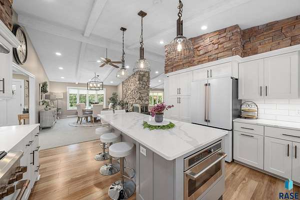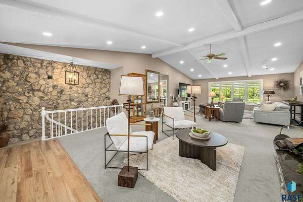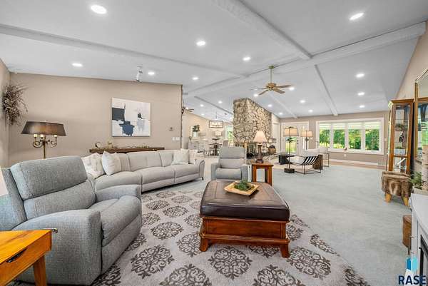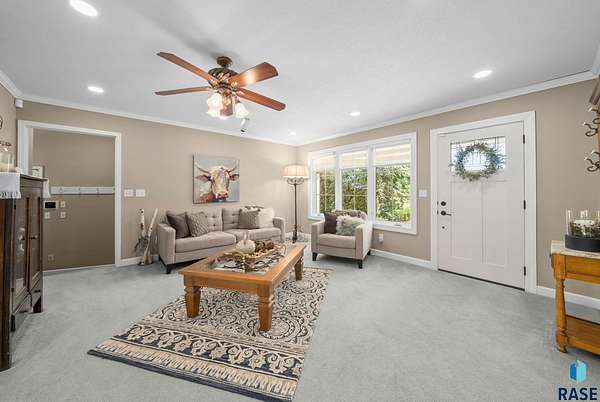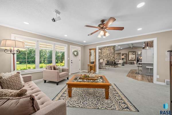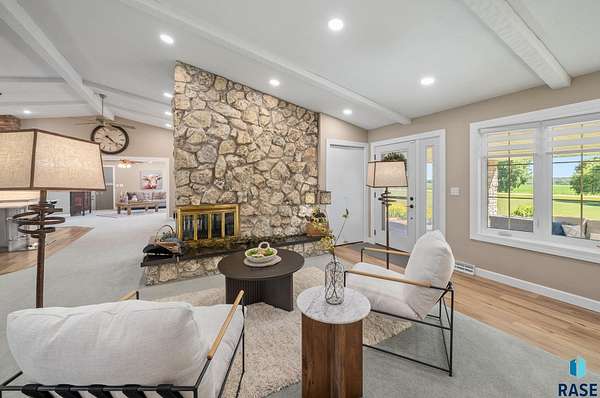 Experience the unexpected at this Dream Acreage Retreat. This beautifully updated modern ranch home offers a rare combination of privacy, luxury and everyday convenience. Just minutes from Sioux Falls and situated on 3.23 acres all accessed by a fully paved drive. Just Imagine waking up to mature trees, roaming wildlife, and peaceful surroundings as part of your everyday life. Step inside and let curiosity lead you through over 4,600 sq ft of light-filled spaces designed for gatherings and quiet escapes. The gourmet kitchen is the heart of the home, showcasing a striking 9-foot quartz island, quality cabinetry, and premium finishes ideal for entertaining and daily living. Spacious living and dining areas create a warm yet sophisticated atmosphere throughout. With five generous bedrooms and three full baths, there's room to grow, host, and create lasting memories. Thoughtful updates throughout including the kitchen, millwork, windows, remote-controlled blinds, and lighting, bring a fresh modern feel you'll appreciate at every turn. The oversized heated 4-stall garage is complete with hidden attic storage and invites endless possibilities for hobbies, toys, or your next big idea. Outdoor living shines with two inviting patios. Will your favorite moment be morning coffee on the covered front patio, or unwinding in the private backyard retreat designed for peace and relaxation or some star gazing? All of this just minutes from Sioux Falls' premier amenities and in a highly regarded school district. Discover the lifestyle that awaits. Schedule your private showing today and experience this exceptional acreage firsthand. Be sure to view the walk-through video.