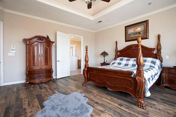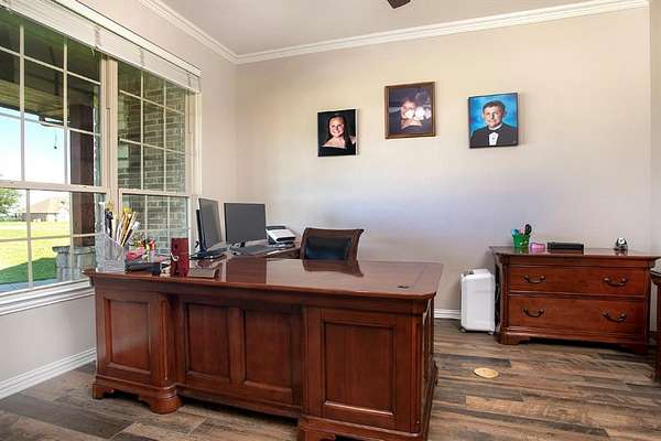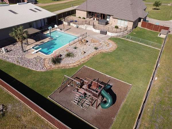 Impressive property perfectly situated with picturesque views of your very own Texas Paradise. Custom 5 bedroom home that is spacious both inside and out. Professional mature landscaping both front and back. Over 3 acres with pond, pool and workshop. Upon entry you are greeted to a beautiful floor to ceiling stone fireplace stately positioned between the living and formal dining. Stunning kitchen with stainless appliances, abundant cabinet and counter space, large pantry and much more. Large secondary bedrooms, two with jack and jill bathrooms, oversized and split from primary. Primary suite with stunning views and full spa like bath with separate bath and shower. Gameroom, Office, Pool Bath and much more! Outside you can relax under the large covered patio worry free from mosquitoes as the entire house perimeter and backyard is protected by a professional misting system. L shaped pool that is simply PERFECT. Spa, Playground and fully fenced backyard with separate wrought iron fencing that has been thoughtfully designed for safety and function while optimizing the view! Large 50' x 80' shop equipped with 400 amp electrical service, 12x12 room with half bath, 16'x16' steel room, stainless dog washing station, washer and dryer hookups and much more! Shop has endless possibilities including home business, easily converted to living quarters or simply the perfect shop! Notable 14' wide and 6" thick driveway that allows for a large approach to shop separate from the main house. Construction and finish out across the board on this property are top tier. Impossible to list all the features, please see full feature sheet with property details. Great location with NO HOA, easy commute with access to both 175 and I-20 in minutes.