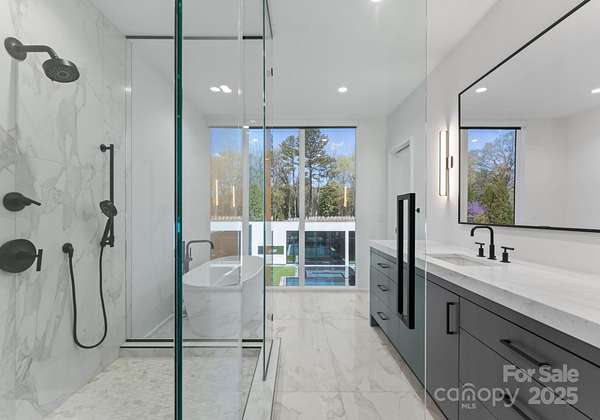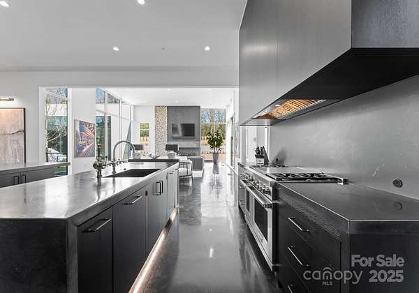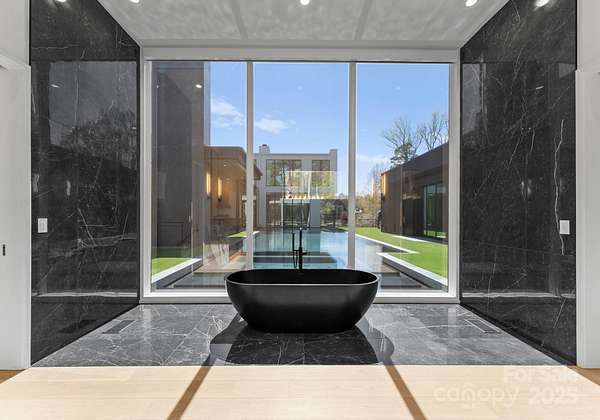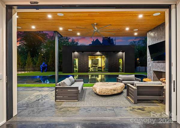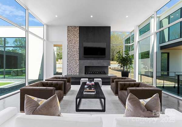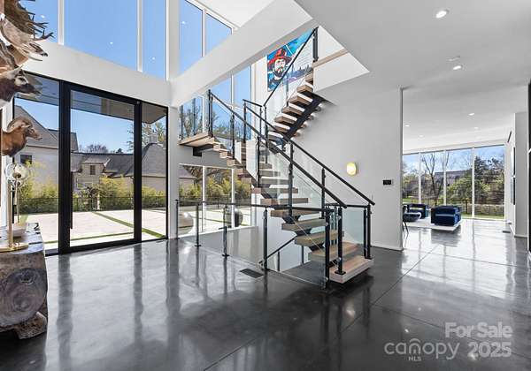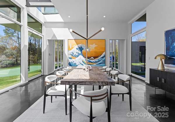 Situated on over 1.75 acres in SouthPark's sought after Carmel Park neighborhood. This modern residence offers unmatched durability, bold design and refined elegance. A floating concrete motor court makes a dramatic first impression, setting the tone for the home's architectural presence. Inside, expansive open living spaces are framed by clean lines and walls of glass, creating a fluid transition from indoors to outdoors with views of the infinity-edge pool, sophisticated gardens, courtyard and expansive lawn. Secluded and secured by 2 gated entrances, this home also has 2 detached living spaces on the property which can used for guest suite, studio, office, etc. State of the art HVAC and Audio/Video and a 2,800 SF subterranean garage This exceptional residence was designed by Greg Perry Design and built by the Thompson Building Group.
