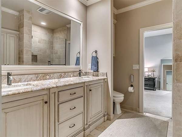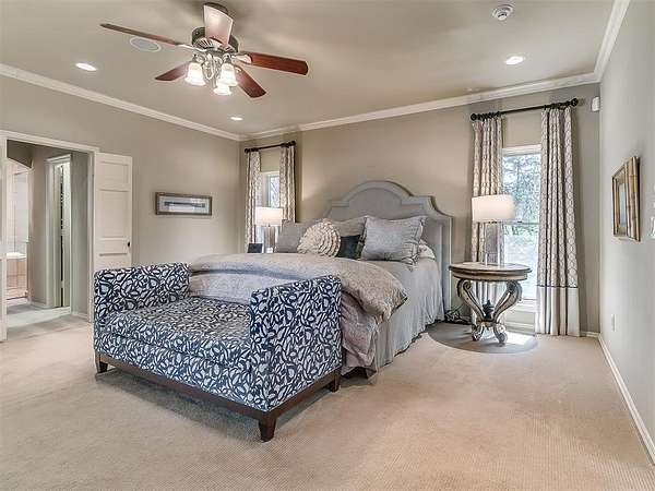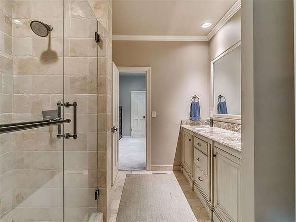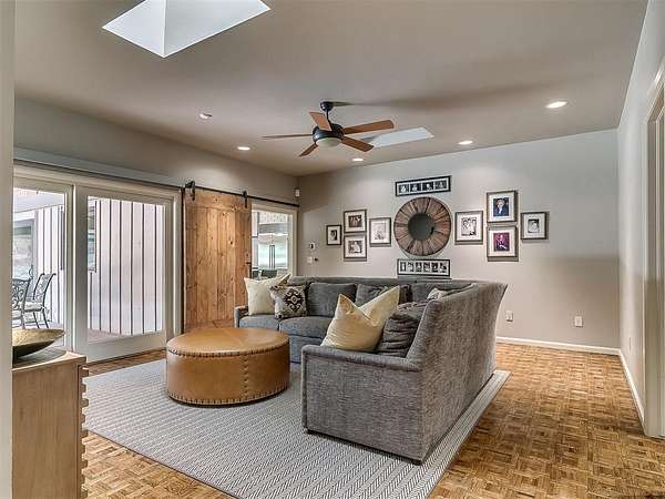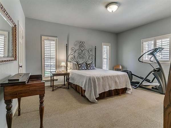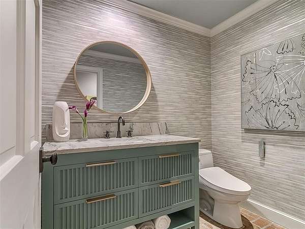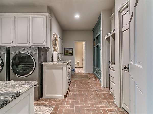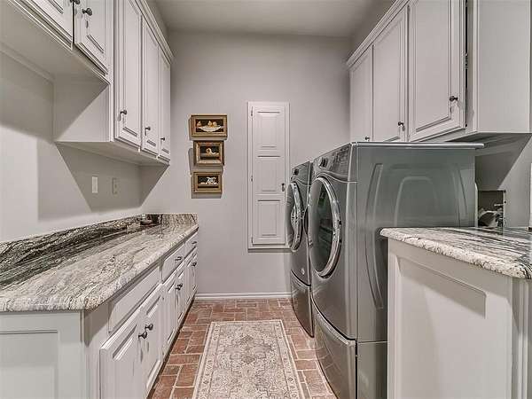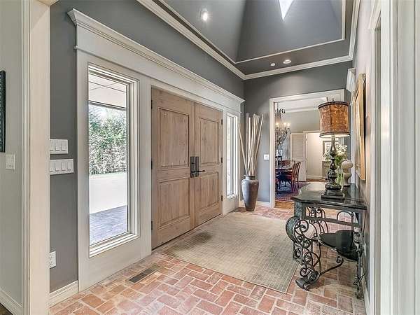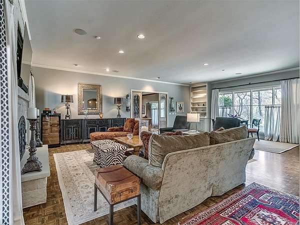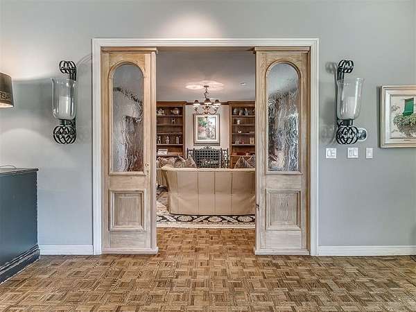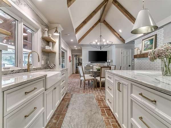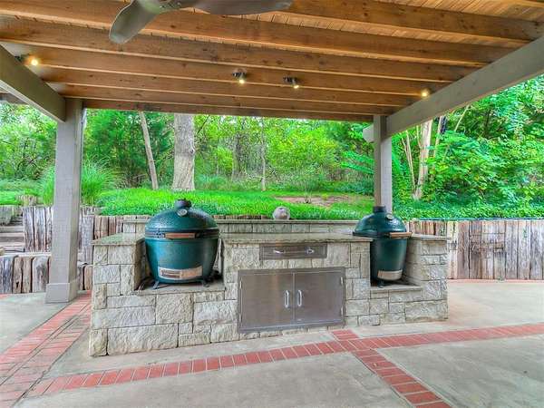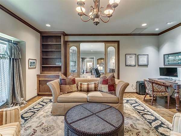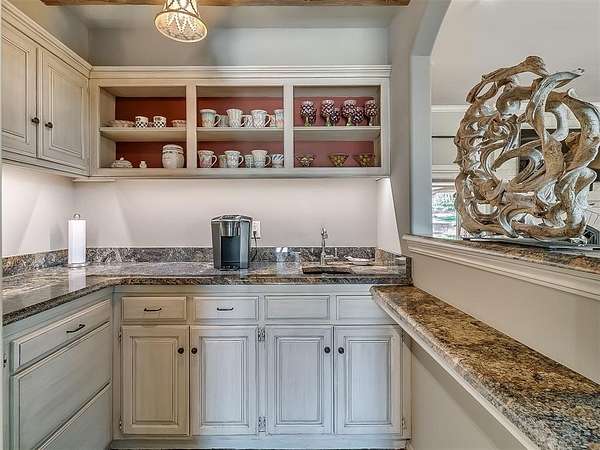 Situated on 2.5 lush acres with a circular drive, this exceptional residence showcases refined craftsmanship and high-end finishes throughout. The fully remodeled chef's kitchen-designed in collaboration with a renowned designer-serves as the heart of the home, featuring waterfall quartz countertops, custom cabinetry, floating shelves and premium appliances including Sub-Zero refrigeration and a Wolf 6-burner gas range with double ovens. Wood beams, gorgeous lighting and a charming a fireplace add warmth to this space. The kitchen leads to an expansive living area with custom built-ins, a cast stone fireplace, parquet wood flooring and walls of windows filling the space with natural light. A stylish bar with sink and storage enhances the home's entertaining appeal. The private primary suite offers a spacious retreat with dual vanities, an oversized walk-in shower, sunken soaking tub and separate closets with built-ins. Additional features include a formal dining room featuring a distinctive brick accent wall adding warmth and character, office with built-ins and fireplace, and a flexible living space with barn door and patio access. Three secondary bedrooms offer walk-in closets, including a Jack-and-Jill bath and a separate full hall bath with pool access. An oversized laundry room features granite countertops, a farmhouse sink, 2-drawer beverage refrigerator, mud bench and an additional full bath. Step outside to a resort-style backyard where lush landscaping surrounds the pool, complete with swim-out ledges, a heated smart hot tub, built-in patio heaters, and an outdoor kitchen with dual Green Egg grills-perfect for effortless entertaining. Other highlights include a Sonos sound system, plantation shutters, skylights and a 3-car garage with epoxy floors, built-ins, and a safe room. Major updates include HVAC, furnaces, roof, and aerobic septic system. Simply put, this is a beautifully designed home offering comfort, style and seamless indoor-outdoor living.