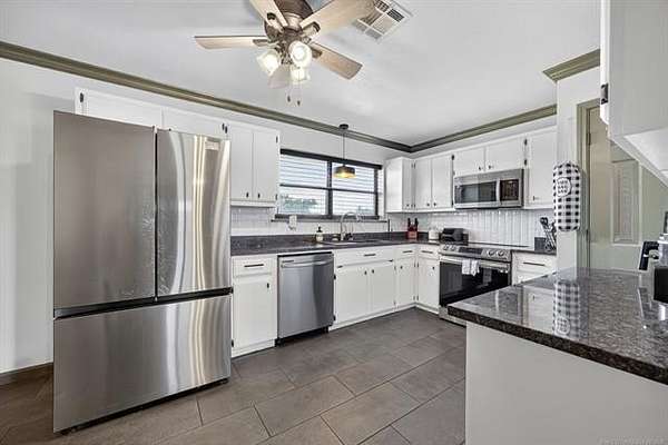 2.31 acres with updates throughout! This move-in ready 3-bedroom, 1.5-bath home features a new roof overlay (July 2025), fresh interior and exterior paint, and durable luxury vinyl plank and ceramic tile flooring. The kitchen blends style and function with granite countertops, stainless steel appliances, and plenty of storage, ready for everyday meals or weekend gatherings. Step outside to enjoy the covered front porch, the perfect spot for morning coffee or relaxing in the shade after a long day. With 2.31 acres, you'll have room to spread out and enjoy the tranquility of country living while staying close to town. The property also offers raised beds, a storage shed, and an almost-new aerobic septic system. Parking and storage are no problem with a 1-car attached garage plus a 2-car carport. Located less than a mile off the paved road and only minutes from Cushing, this property combines modern updates with the peaceful lifestyle you've been looking for. (Please note: To help you envision the possibilities, some photos include virtual staging.)