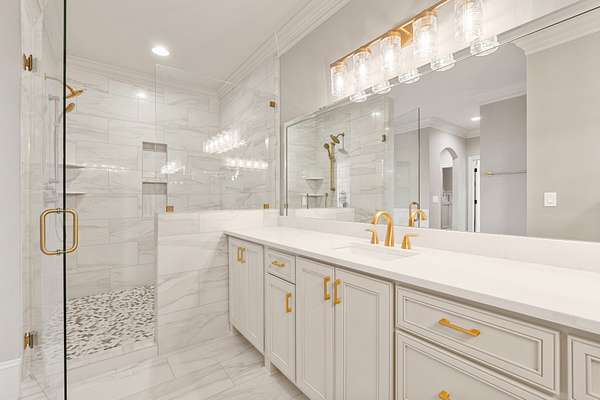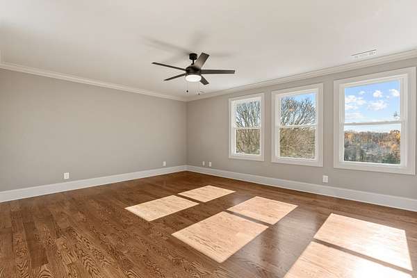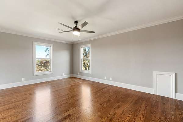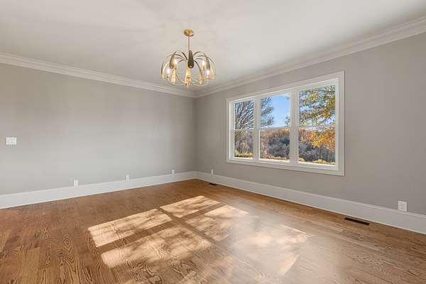 If you're seeking land in an ideal location accompanied by a beautiful home, look no further! This sprawling country estate is almost 9 acres on Hickory Ridge Road, 4800+ sq ft that has been Completely Remodeled down to the studs, double primary bedrooms on the main floor, and a Full Basement! This is the perfect blend of country charm and modern conveniences! 3/4" solid Oak Hardwood floors throughout all living areas (only carpet is in the Rec room over garage), Upgraded Appliances w/ Custom Cabs, 3 pantries, Quartz in all wet areas. Custom closets throughout. 4 car total garages w/ pedestrian doors. No HOA (Bring on the farm animals and go fishing)! Just a few odds and ends to be completed. Check out the video below!