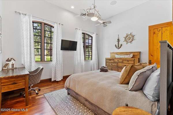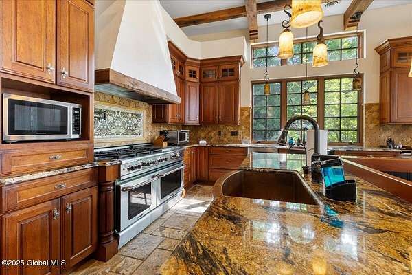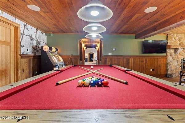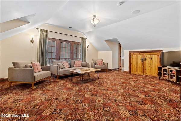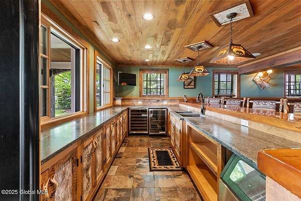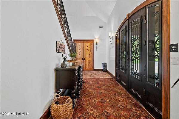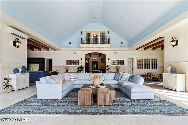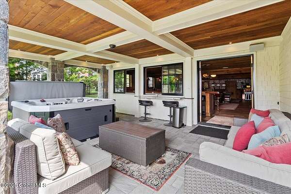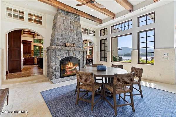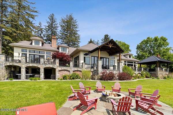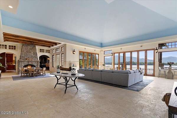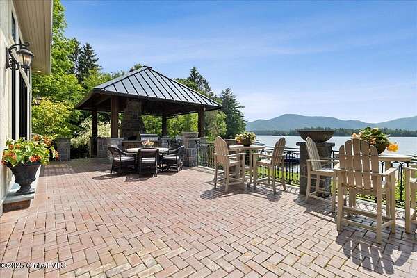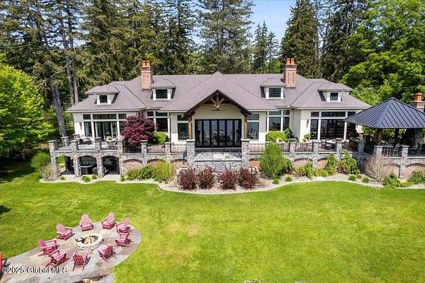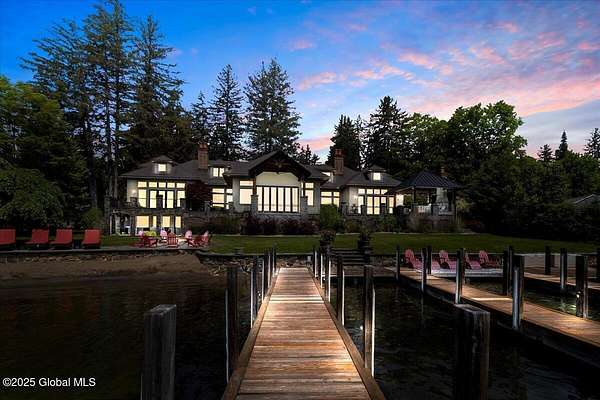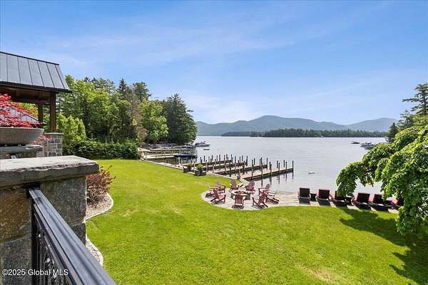Luxury meets lifestyle with this private estate in the heart of Bolton Landing. Resort-style home nestled in Huddle Bay, provides breathtaking views of Lake George and surrounding mountains. Situated on almost 2 acres, this home has it all! Entertain outdoors with 145' of lakefront, 45' of private sandy beach, 4 docks, 2 hot tubs, fire pit and large level yard. This 7 bed, 9 bath, 11,000+ square foot home boasts 12' timbered ceilings, stone fireplaces, barn wood w/stone & brick detail throughout, in addition to a movie theater, gym, bar, pub room, elevator and game room. A newly built open-concept living room with stunning panoramic views of Lake George everywhere you look. Complete with a 3-car detached garage. Proven VRBO performer at $6,250/night in summer. Short 5 min walk to town.