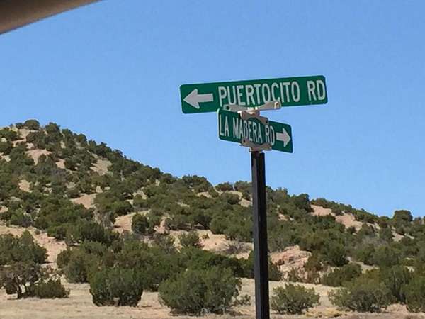 From ABQ:Take I-40 East to Exit #175. North Hwy. 14. for 14.5 Miles to Puertecito Road on the left. Look for the Santa Fe County sign, Puertecito Road is the immediate left.) Continue on Puertecito Road for 6 miles. Just past the 6 miles mark is the Southeast corner of property at intersection of La Madera & Puertocito Road.