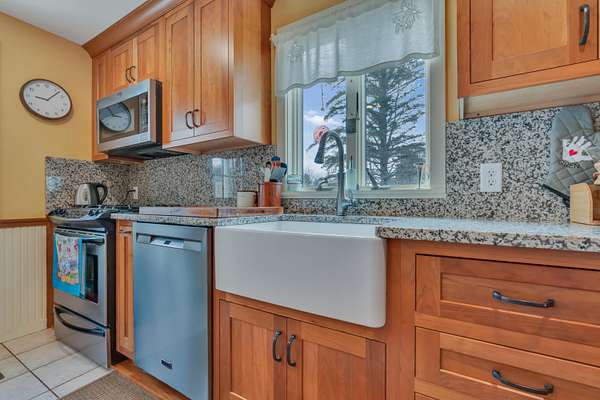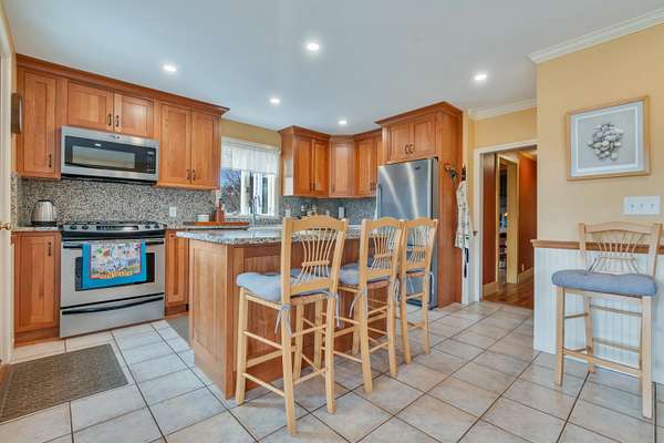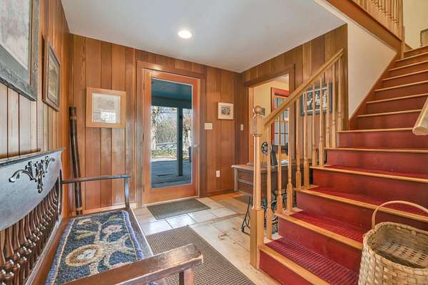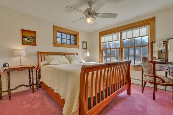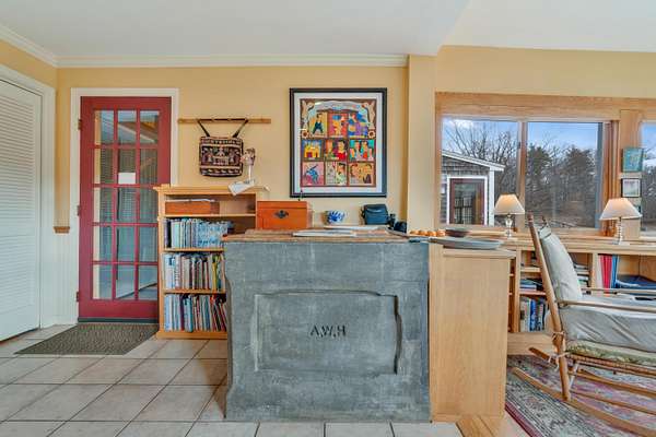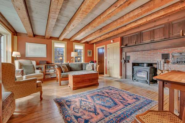 Enjoy a piece of Maine's History with this 1789 Farmhouse including an attached ADU, ideal for potential rental income! This charming Post & Beam home blends period character, with thoughtful modern updates. As you walk through the front door, you're welcomed into an inviting entryway. The updated kitchen includes tile flooring, granite countertops, center island, farmer's sink, & SS appliances. The gleaming wide pine plank floors guide you through the home's warm & inviting spaces. The bright sunroom, complete with a heat pump, provides year-round comfort & beautiful views of the backyard. The living room showcases exposed beams, a fireplace with a wood stove & beehive oven, creating a cozy authentic farmhouse feel. The adjacent library with pocket shutters is a dream for book lovers, featuring built-ins that surround the room with character & charm. The primary bedroom is conveniently located on the 1st floor with 2 closets & a fireplace. Also on the main level is a large full bath with tile flooring & an easy access laundry area. There are 2 separate staircases that take you to the 2nd floor where you'll find wide hallways, 3 large additional bedrooms, a 3/4 bath, & a nice size attic for storage. The property includes a two-car-attached garage with automatic door openers that lead you into a convenient mud room. The 1st floor ADU features a sunny eat-in kitchen, living room, bedroom, & bath with walk-in shower. Outside, a covered porch accompanies the blue stone patio on the front of the house, a large deck on the rear of the home, a standby generator & a fenced-in area perfect for pets. You'll also find a chicken coop, an extra storage shed, & an old blacksmith shop that adds to the property's historic appeal. This property offers privacy, beauty, & timeless New England charm. Located in a rural setting, yet not far from all your in-town needs. Just minutes to Mousam Lake Public Beach & boat launch, and a few miles to Williams Town Park for miles of hiking.