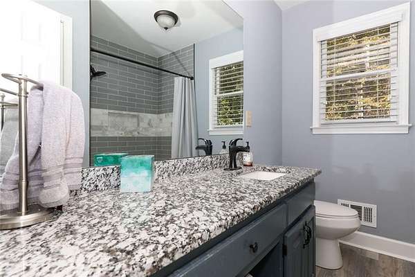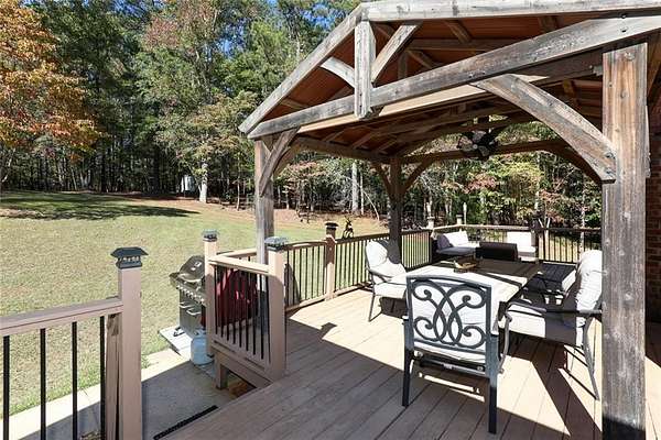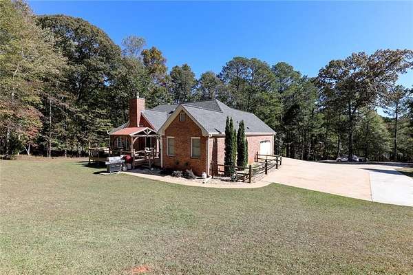 This is an immaculate full brick home with a professionally finished lower level on a private 2.17-acre estate lot in a Deer Creek Farms subdivision. Wildlife abounds, with deer watching a favorite pastime. Enjoy safe walking trails on this estate! There is ample room to store an RV, or a Motor Home, and parking for up to 12 cars. This home has been renovated inside and out... EXTERIOR FEATURES: Start with a large, partially covered, rebuilt deck. It also has a detached storage building with an adjacent lean-to, a 2-car garage at the kitchen level, a metal carport behind the house, and a large workshop with a garage door adjacent to the exterior door into the lower level... INTERIOR FEATURES: This home has been remodeled with new paint, and hardwood flooring throughout the main level. The bathrooms have new floor tile, fixtures, and lighting, and the showers were renovated with new LVP flooring and easy-access entries. The kitchen features a hardwood floor, direct access to the laundry room, extensive cabinets, a pantry, granite countertops, stainless steel appliances, a breakfast bar with seating for 4, and a built-in eating area overlooking the deck and rear lawn. You can watch the deer play while you have your morning beverage. One of this home's most stunning facets is how the bright, open great room connects with the dining room. Add the wood-burning fireplace and an elegant tray ceiling, and you have a perfect setting for large gatherings. There are crown moldings and tray ceilings in the great room, dining room, and master bedroom. All rooms have ceiling fans, and the master bedroom has a walk-in closet. The master bathroom features new LVP flooring, a double vanity, a garden tub, and a retiled shower. The second largest bedroom features a vaulted ceiling with a generous-sized closet. The third bedroom is an ideal guest room or home office. One labor-saving feature that adds to the healthy air in the home is the built-in central vacuum system... FINISHED BASEMENT FEATURES: It has a fourth bedroom, a full bath, a large recreation room, a game room, and an anteroom perfect for a workout area. All floor coverings are new and the lights have been replaced with long-lasting, low-energy LED fixtures. The basement has both internal and external access, and a handy workshop with a garage door adjacent to the exterior door. In addition to a ceiling fan, the workshop also has an AC unit, making it ideal for year-round usage... ADDITIONAL FEATURES: One of the bonuses this home offers is the possibility that the attic could be finished for additional storage space. It has a large, open area with more than 8 feet of headroom. The workshop adjacent to the lower level entrance could be made into a 1 car garage by moving a retaining wall. This home is low maintenance because it full brick and all the trim has been recently repainted. It is move-in ready... COMMUNITY FEATURES: Deer Creek Farms features estate-sized properties, most greater than 2 acres, that are meticulously maintained by their owners, without the added cost of an HOA. That's right, NO HOA! With the city of Braselton, Chateau Elan, and I-85 only minutes away, excellent medical facilities, schools, restaurants, recreational venues, and shopping opportunities abound.