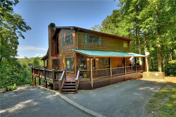 Nestled high on a serene hillside in the coveted Aska Adventure Area, Resting Bear Retreat is a fully furnished, turnkey mountain escape with breathtaking long-range views from every angle. This 3-bedroom + loft + bunk area cabin combines laid-back comfort with professional decor, offering the perfect balance of rustic charm and modern luxury. Step inside and be welcomed by soaring vaulted ceilings, warm hardwood floors, oversized windows that flood the space with natural light, and custom log stair rails leading to a cozy sleeping loft. The great room features a striking stone fireplace and french doors that open to expansive wraparound decks, designed to maximize the view and fresh mountain air. The terrace level is made for entertaining, with a full game room including a pool table and a second gas fireplace. Step outside to enjoy the lower deck's porch swing or relax in the hot tub while soaking in the peaceful surroundings. The upper deck features a screened-in porch with ample seating, a charcoal grill, and the backyard boasts a fire pit for evenings under the stars. Set on 1.7 private acres with a long driveway and generous guest parking, this cabin offers plenty of room to gather, unwind, and explore. With 3 bedrooms, an open loft sleeping area, and additional bunks on the terrace level, there's space for everyone. A proven short-term rental success, Resting Bear Retreat is being sold fully furnished - a true turnkey investment or a ready-to-enjoy personal getaway in the Blue Ridge mountains.