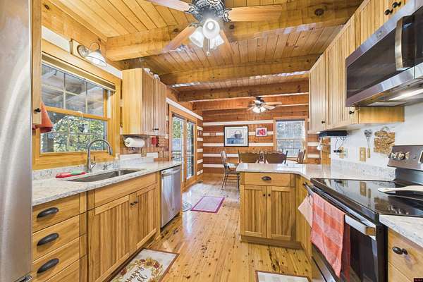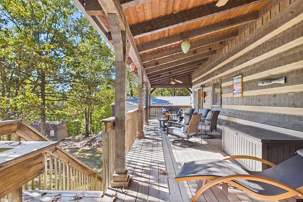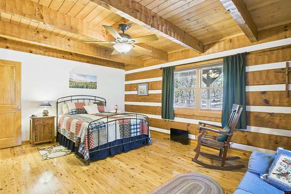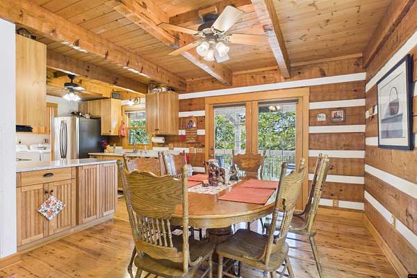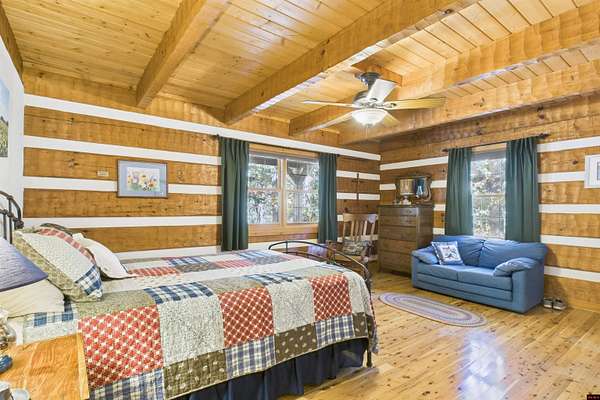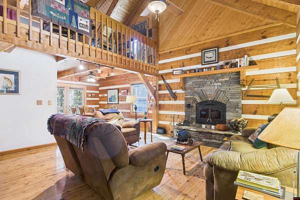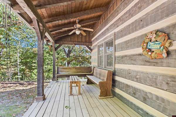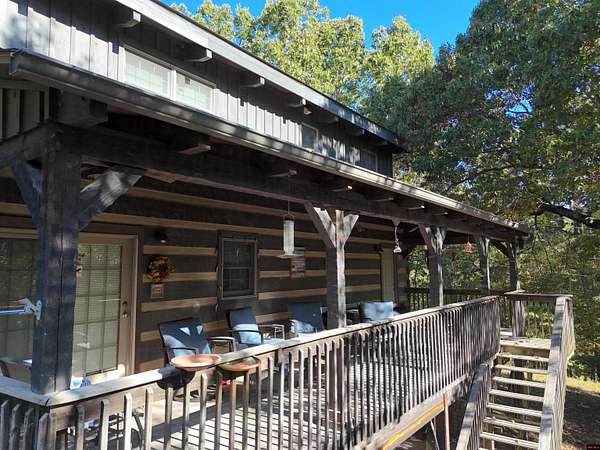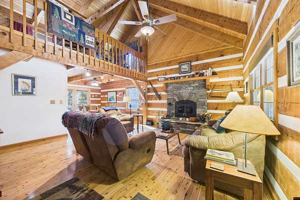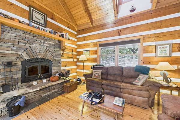 Presenting a rare opportunity to own this custom-built Hearthstone log home, offered for the first time since its creation in 2007. Nestled on 12 private, wooded acres m/l just minutes from Cartney walk-in access to the majestic White River and an unparalleled blend of craftsmanship and comfort. This 3 BR, 3 BA, 2,876 sq ft residence showcases cathedral ceilings with exposed beams, a wood-burning stone fireplace, and Cypress hardwood flooring throughout. The chef's kitchen features quartz countertops, stainless appliances, and a timeless, open design. Enjoy serene outdoor living with a beautiful covered front porch and a covered rear deck overlooking a custom fire pit and peaceful forest views. The walkout basement includes a spacious family room with pellet stove and a workshop/man cave, while the 22 x 30 detached shop offers concrete flooring and versatility. A masterpiece of rustic luxury, this property truly looks like something out of a storybook! Don't miss this beauty $499,000