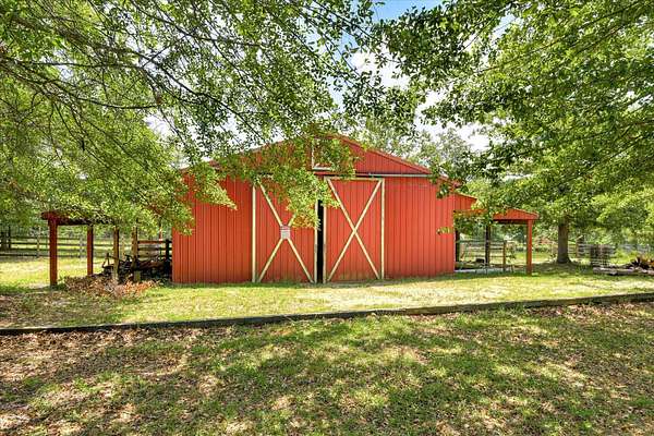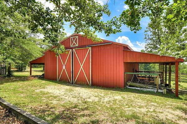 Log Cabin on 42.09 Acres near Ridge Spring-Monetta | Horse-Ready | Off-Grid Capable | Hunting | Homesteading come check this one out! This 42.09-acre wooded estate offers a rare convergence of livestock infrastructure, off-grid readiness, tactical training features, and luxury rural living. Ideal for homesteaders, horse owners, military families, hunters, and hobby farmers. PRIMARY RESIDENCE FEATURES: - 3 Bed / 3 Bath | 1,560 sq ft | Solid 8'' Double Tongue-and-Groove Log Cabin - Each bedroom with dedicated private full bath - Whirlpool tub in the primary bath - Central HVAC + High-End Soapstone Wood Stove (2-burner top cookplates) - Built-in multi-room ceiling sound system - Expansive dual porches (60'x8') front and back - Solar panels (paid for) reduce electric bill LAND and WILDLIFE - 42.09 fully wooded acres with abundant wildlife, internal riding trails, and cleared hunting lanes - Springs and running stream on property - Wildlife: Deer, Turkey, Bear, and a known Black Panther sighting - Multiple Deer stands: one overlooking open field, others along strategic hunting lanes including one with 200-yard lane visibility - Camper hookup with septic, water, power EQUESTRIAN and FARM INFRASTRUCTURE: - Barn: Two-story, approx. 39' x 31', with electric and running water - 2.5-acre electrified pasture adjoined to barn - Fenced backyard (approx. 95' x 70') ideal for dogs or livestock - Greenhouse (40') + 3 raised garden beds - 4 x 1,000 gallon tank rain-water collection system, one at each corner of house, provides irrigation to raised beds and greenhouse - Apple Trees, Pecan Trees, Fig, Peaches, Blueberries FIRING RANGE: - Rifle range to 500 yards (300 meters) with covered firing point - Pistol range with multiple tactical lanes - Ammo Shed (8' x 7.5') ADDITIONAL BUILDINGS: - Guest House: 31' x 18', plumbed, powered, partially finished, kitchen, bath, living/sleeping area + ceiling projector - built as a hardened shelter with steel beams and poured concrete over ceiling. Air BnB this out or set up an apartment/in-law suite! - Smokehouse approx. 8ft by 7.5 ft (hang a full hog) - Large Powered Workshop with adjoined storage room - Tool Shed 7ft x 8ft SCHOOL ZONE: - Ridge Spring-Monetta Elementary, Middle, and High Schools Floor plans to log cabin available.