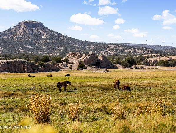 HISTORIC 'FORT ROCK RANCH' for sale in Seligman, AZ. Formerly the Buckman Stage Station, Fort Rock got its name after a battle in 1866 with the Hualapai Indians which was hard fought, and won, in the midst of the majestic rock formations surrounding the skirmish. Picturesque landscape is a feast for the eyes & soul. Breathtaking, panoramic views with widely varied topography. SEE AERIAL VIDEO in PHOTOS slide 2. Water abounds. 22 wells & multiple dirt tanks dot this 104,145 acre property. (52,677 deeded / 51,468 leased) Live water includes Meadow Lake, Upper Trout Creek, Fort Rock Creek, Tom Bacon Lake, Horse Lake & more w/ native species of fish. The Air Strip has been resurrected, with the first plane landing on site in over 30 years. EPIC! * Click 'MORE' for addt'l important details!