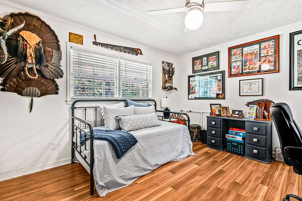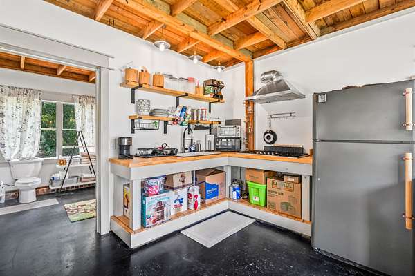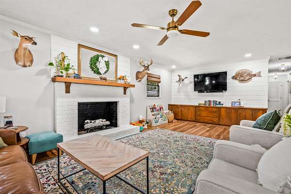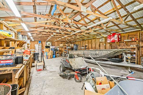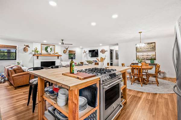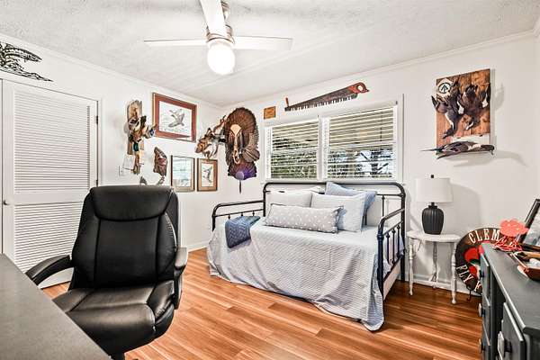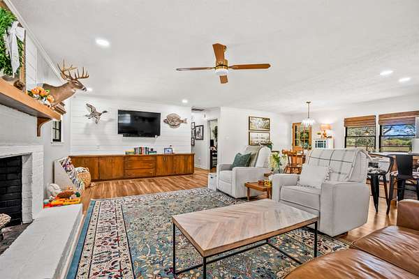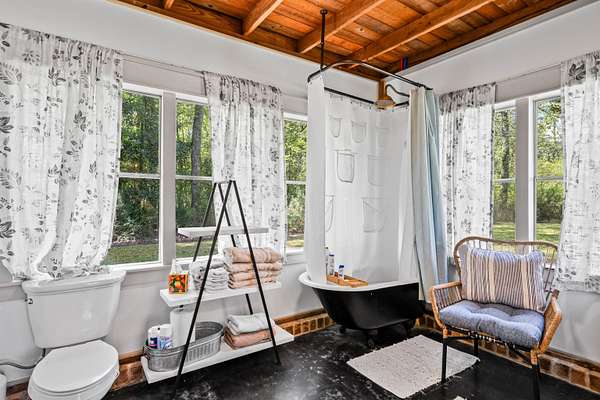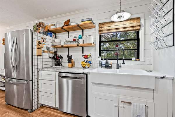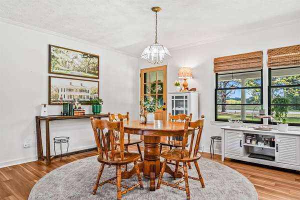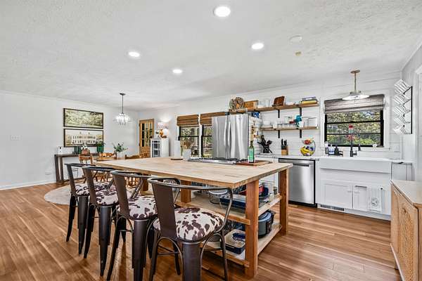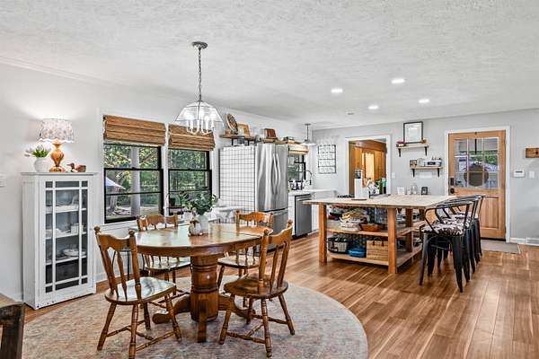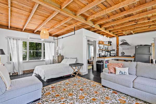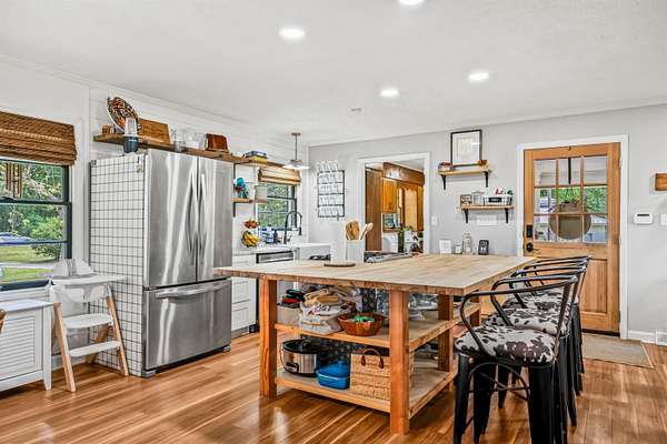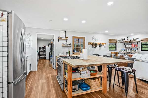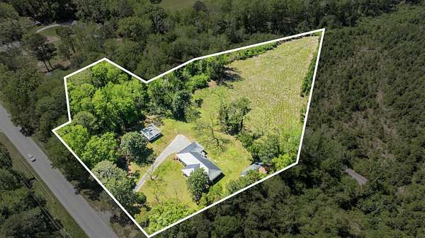Welcome to this beautiful country estate just minutes from downtown Conway featuring a charming white brick ranch-style home with a 3-car carport, a private guest house, and a spacious 40x24 workshop and all are perfectly situated on this 4.14 acres. As you step onto the brick-floored front porch and enter the main house, you're greeted by stunning wood floors that flow seamlessly throughout. The open-concept design creates an inviting atmosphere, highlighting a spacious great room with a white brick gas log fireplace, wood mantle, shiplap accents, built-in cabinetry, and corner shelving-perfect for displaying cherished photos and decor. The kitchen is certainly stylish featuring white cabinetry, granite countertops, a butcher block center island with a five-burner gas range, a double porcelain farmhouse sink, stainless steel appliances and recessed lighting. Down the hallway you'll find two comfortable guest bedrooms with ceiling fans and a full guest bath featuring decorative tile flooring, tile countertops with double sinks, and a tub/shower combo with tile accents. The primary suite, located at the end of the hall, offers double closets, a ceiling fan, and a private full bath with tile floors, double sinks and tile accents throughout. Additional highlights of the main home include a well-equipped pantry/laundry area with a stainless-steel mud sink, Samsung washer and dryer, and extra cabinetry for storage. Just across the yard sits an adorable approximately 625 square-foot guest house, complete with one bedroom, a living area, full kitchen, and full bath. This inviting space features an open floor plan, mini-split AC unit, tankless water heater, wood countertops, a five-burner gas range, porcelain sink and a charming clawfoot tub/shower combo, along with space for a stackable washer and dryer. This guest house could be perfect for a Mother-in-law suite or guest that want to stay longer or could be a rental opportunity. The 40x24 workshop/barn is ideal for hobbies, storage or equipment, offering built-in workbenches and ample space for lawn equipment, tractors, boats or recreational vehicles. All three structures- the main home, guest house and workshop- feature durable metal roofs installed in 2017. The homes and workshop sit on approximately one acre, leaving an additional 3.14 acres of open land perfect for farming, gardening or even horses. Conveniently located near downtown Conway, you'll enjoy easy access to local shopping, dining and the scenic Conway Riverwalk along the Waccamaw River. Plus, you're just about 15 miles from the beautiful beaches of Myrtle Beach. Don't miss your opportunity to own this peaceful country retreat with modern comforts, flexible living space and room to grow.