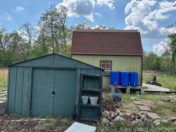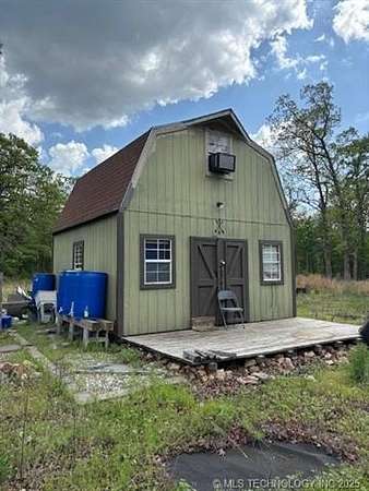 Beautiful treed 15.68 (per court house) acres mol with county road frontage on 2 sides. Paved on one side and gravel on the other. This property has a large storage building with electric to it that could be made into a tiny home or hunting cabin. There is an access point near the back of the property off S 565 Rd. There is a large cleared area and a storage building. If you are looking for a building site or just a place to get away this may be it. Less than 10 miles to Lake Eucha. Shown by appointment! Please stay on the driveway. Bug spray and boots are recommended if walking the property.
