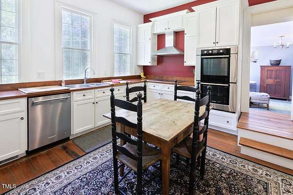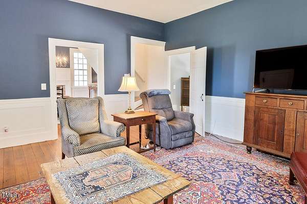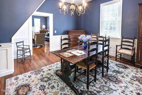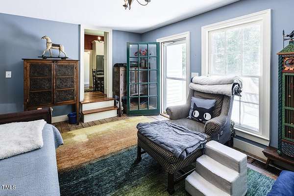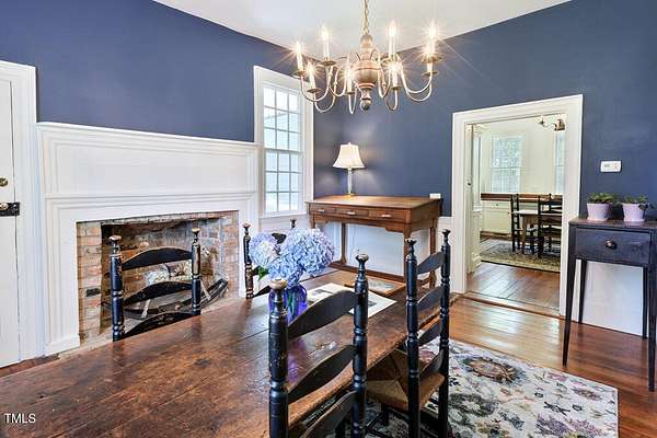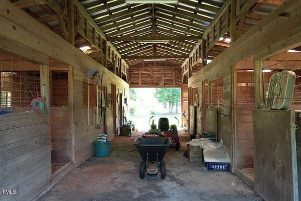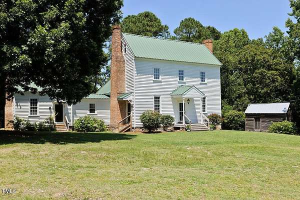 Built in c.1805 the William H. Jeffreys home has been lovingly cared for by the current owners since 1991 after the home was moved to the current site along the Little River where the home was carefully positioned to face exactly as it had on the original homesite on the other side of the river. 5 Fireplaces, 1 fully functioning all with mantles that are unique to each fireplace, Large Rooms with High Ceilings, The current main floor Primary Bedroom was once the kitchen, and positioned the same distance from the main house. They were connected by a hallway with a Full Bath and Laundry Room when the home was modernized with electricity and plumbing. Chef's Kitchen with Top of the Line appliances, Heart of Pine Wood Floors throughout, Study Downstairs along with the Living & Dining Rooms, Incredible Storage utilizing every nook & cranny throughout the home. The second floor features a Large Secondary bedroom or a second Owners Suite with Oversized Walk-In Closet. The barn has a tack room, 8 stalls and wash station as well as 2 fenced areas for pasture or riding. This home is registered with Preservation North Carolina for its historical significance and to ensure the legacy going forward. This is a truly exceptional and unique home ready for the next caretaker.