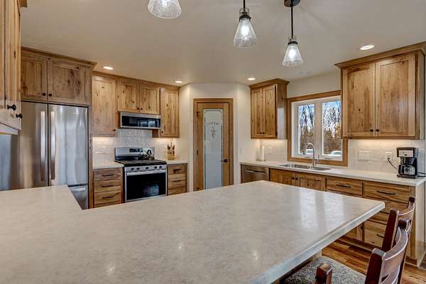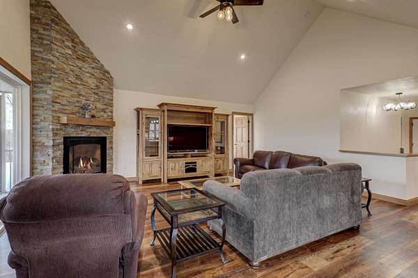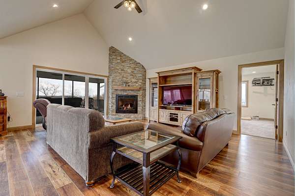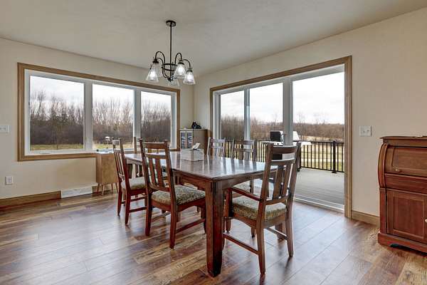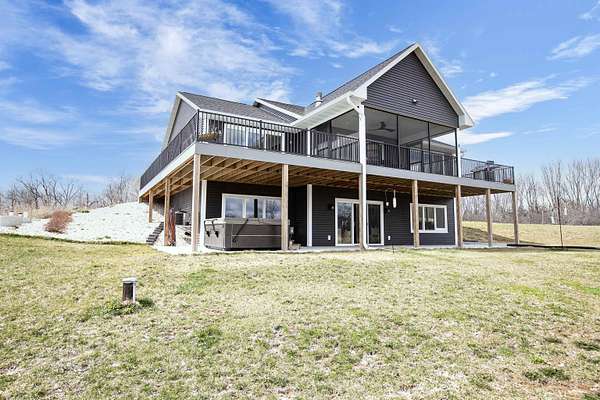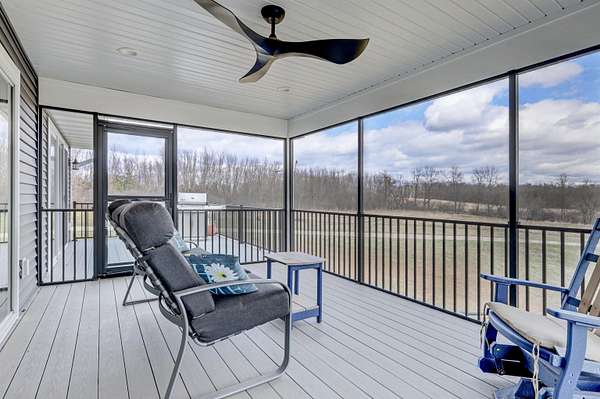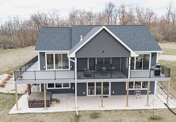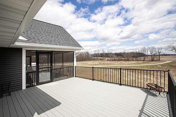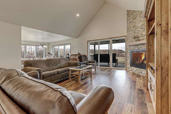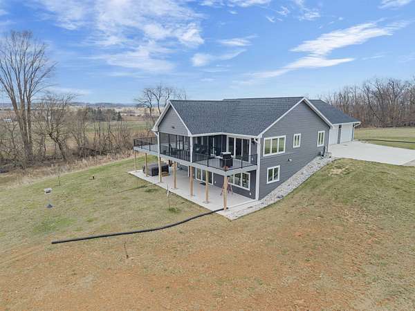 Enjoy the 8.86 acres and its wildlife at this beautifully designed contemporary, custom home with thoughtful touches and an open-concept floor plan, where the living room w/gas fireplace, dining room and kitchen areas flow seamlessly into each other...A natural-light lover's dream! The oversized windows and sliding patio doors flood the east facing space with spectacular views! This home features two bedrooms, three full baths. Enjoy early sunrises from the screened porch or the wrap around deck off the primary suite, that hosts an 18' x 9' walk-in closet that includes a laundry area. The full walk-out basement offers endless potential! The 3.5 car extra deep garage adjoins the 12' x 27' heated/finished workshop. Seller requests 24 hours for binding acceptance.
