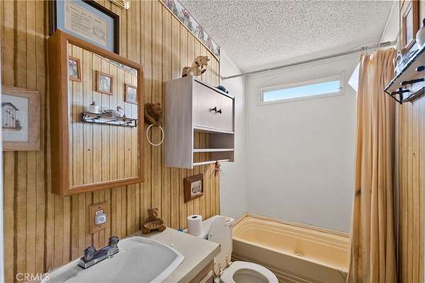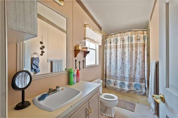 The primary suite is tucked away on one side of the home for privacy, with a bright carpeted bedroom and a private full bath that includes a single-sink vanity and shower/tub combo. Two additional bedrooms are located on the opposite side, also carpeted with good natural light, and share a full guest bathroom with a tub/shower combo. Comfort features include an evaporative cooler, central heating, propane, and hauled water service.