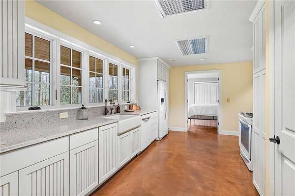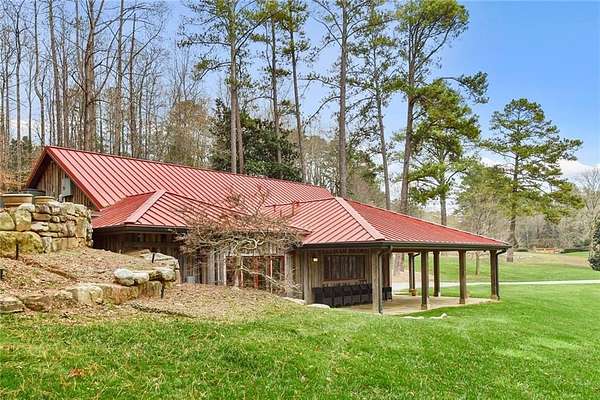 A most private landscaped oasis inside I-285 in the City of Sandy Springs! Build your estate/compound in this serene setting in the utmost location! Enter through the huge electronic gates and drive through 13+ acres. Manmade spring-fed pond with fountain and docks adds to the tranquil views. Unique, newer 1br, 1ba farmhouse on property. The small house includes a wrap-around covered porch, full kitchen, massive garage storage space that fits an RV plus several other vehicles. This barn would also be a great pool house or guest house, horse barn, music or acting studio. This large estate property has room for a pool, tennis court, and horses. Access to the Chattahoochee River at Whitewater Creek Park. No Sign.