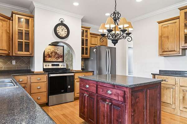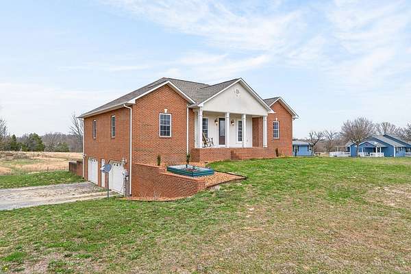 Step into this expansive 2900+ sq. ft. all brick residence, situated on 1.50 acres that presents beautiful views of the surrounding rolling farmland. Inside, discover three bedrooms, two full baths, and a pretty island kitchen equipped with hardwood floors, a pantry, all appliances, and generous cabinetry + counter space. A cozy fireplace and arched doorways make the living room a warm and inviting space. The primary suite offers a walk-in closet with the primary bath featuring dual sinks & relaxing jet tub. Privacy is ensured through a thoughtful split bedroom plan. The finished lower level encompasses a family room with a fireplace, pretty crafted wood ceilings, a versatile bonus room offering multiple possibilities & a full bathroom. Conveniently located just minutes to Cookeville or Baxter, this property also boasts a newer gas tankless water heater, an oversized garage perfect for extra storage, an exterior storage building and a charming covered front porch. Come and see soon!