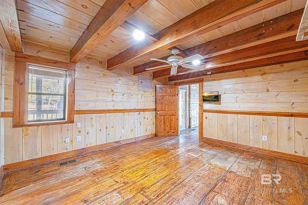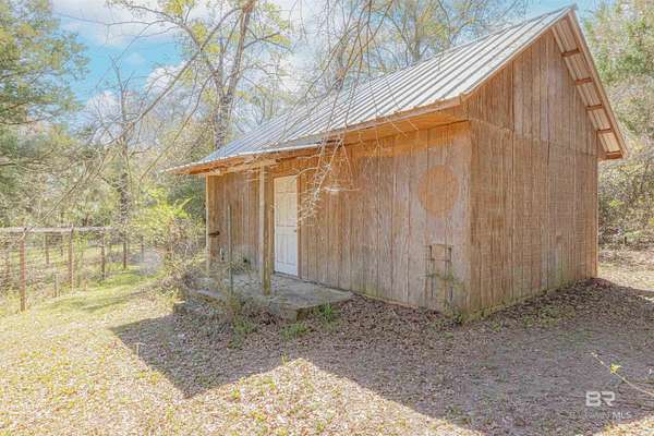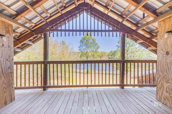 Escape to 15 Acres of Off-Grid Serenity in North Baldwin Discover the fresh air, fruit trees and waterfront country living at Chastang Lake, with self-sufficiency on nearly 15 pristine acres just west of Perdido River. Tucked behind a gated private drive, this unique estate offers a rare blend of modern comfort and complete "off-grid" capability, providing a peaceful sanctuary far from the hustle and bustle. This large custom 2-bedroom, 2.5-bathroom residence is designed for comfort and longevity. Inside, you’ll find thoughtful touches like a cedar closet and unique finishes. The primary bath features double pedestal sinks and a separate soaking tub and shower. Efficiency is built-in with a home generator, tankless water heater and a convenient stack washer/dryer setup. One of the home's most notable features is the dedicated personal chapel and prayer room with authentic stained glass—a quiet, beautifully crafted space for reflection and peace.Step outside onto the large wraparound porch to breathe in the fresh country air and enjoy views of your private waterfront and flourishing fruit trees. This property is a dream for the hobbyist or outdoorsman, featuring: Large Outbuilding & separate Pole Barn: ample space for equipment, vehicles, or a workshop; greenhouse: for year-round gardening and sustainable living; a private Shooting Range: Custom-built for practice and recreation right on your own land.This property is engineered for total independence. With well and septic systems, and a whole-house generator, you have the freedom to live on your own terms or you can connect to municipal water supply lines within 10-15 feet of the pumphouse. Whether you are looking for a weekend getaway or a permanent off-grid homestead, this country charmer offers a lifestyle of privacy, security, and natural beauty. 20 minute driving distance to downtown Bay Minette or Atmore. Buyer to verify all information during due diligence.