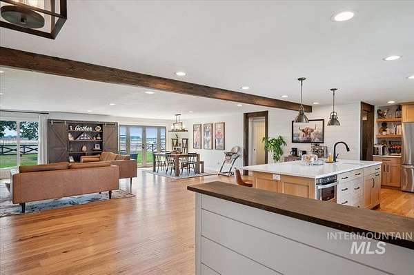 Welcome to the dream of homestead living. Imagine evenings watching breathtaking Idaho sunsets from your picturesque nearly 5-acre property while your livestock graze peacefully nearby. This is the lifestyle so many dream about-gardens full of fresh vegetables, an orchard producing seasonal fruit, and a chicken coop providing farm-fresh eggs for your family each morning. Located just 20 minutes from major shopping and amenities-including Costco and other conveniences-this property offers the perfect balance of peaceful country living with easy access to town. The beautifully remodeled farmhouse features 4 bedrooms and 2.5 bathrooms, offering the ideal amount of space for family living. At the heart of the home is a gourmet kitchen, perfect for preparing meals made with ingredients harvested right from your own land. Designed for those ready to embrace the farm lifestyle, the property includes valuable water rights, a beautifully rebuilt hay barn, and a custom livestock feeder, making it truly turn-key for homesteading. Whether you're raising animals, tending a garden, or simply enjoying the open space and quiet, this property is ready to support your vision. Step away from the city and into the life you've always imagined-your homestead awaits.
