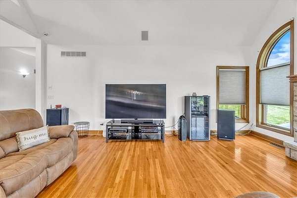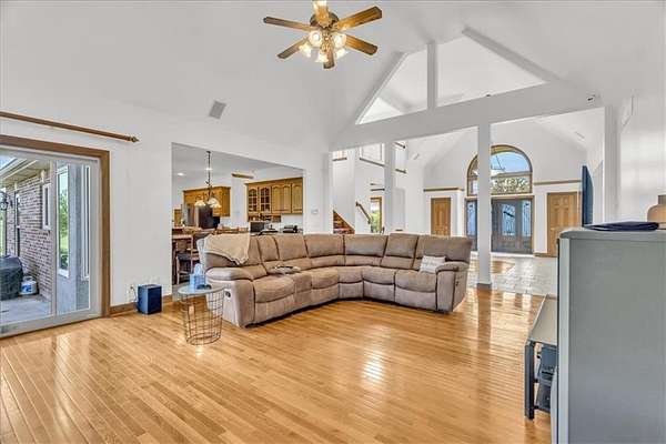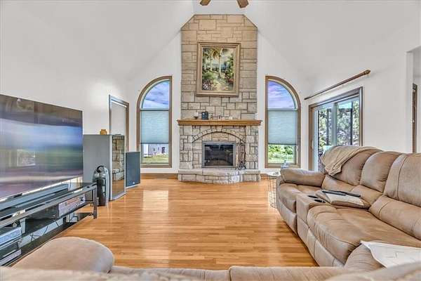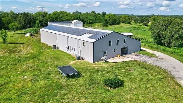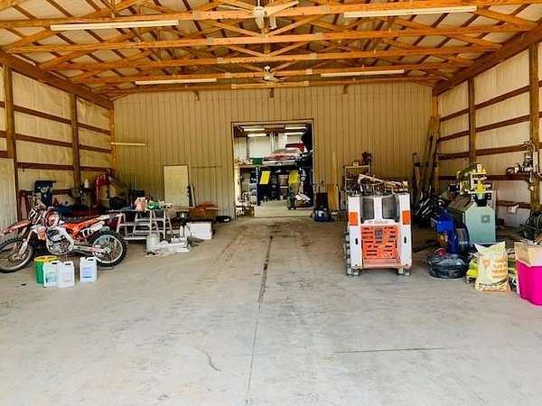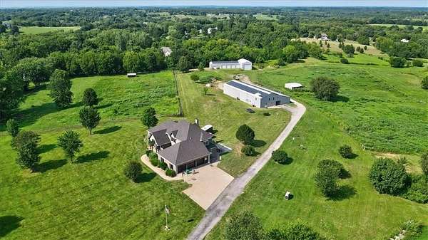 Seize a rare opportunity: Own nearly 23 acres +- of hobby ranch paradise. This secluded haven boasts a blacktop drive leading to a stunning home designed for main-floor living. Revel in a desirable layout featuring hardwood floors, granite finishes, a stone fireplace in the grand family room, and a spacious eat-in kitchen with formal dining. New windows and fresh interior paint. Enjoy the den, loft, and ample bedrooms for everyone. The partially finished lower level includes a vault and walk-out patio. Outside, discover a small orchard, outbuildings, all with concrete pads, water, and electricity, including a chicken coop. The main shop is an impressive 40x110 with 16' walls, 11 plus garage doors, and a 2-bedroom, 2 bathroom in-law quarters with all the amenities. A second outbuilding offers 2 stable stalls and another 5 plus garage space, one with a 14' opening. Both outbuildings have RV hook-ups. Benefit from solar panels, a backup generator, and a fully stocked pond. Bring your animals and embrace the tranquil outdoors, all while being minutes from city conveniences, Legends sporting, NASCAR speedway, shopping, dining, and major highways.