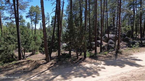 Situated in a gated community, within the Prescott National Forest, this 2 acre parcel is breathtaking and serene. Hear the breeze through the tall pine trees. Camp while you build your dream home in the forest! Your new home awaits in a setting that is so amazing with trees and extraordinary boulder outcroppings, who needs any landscaping! About 20 minutes to downtown Prescott! Electric is at the property line, septic and well would need to be added. Recently Fully Surveyed with corners and lines very visible, large poles to help see lines as well.Make this spot your own!