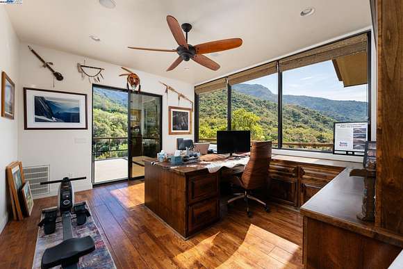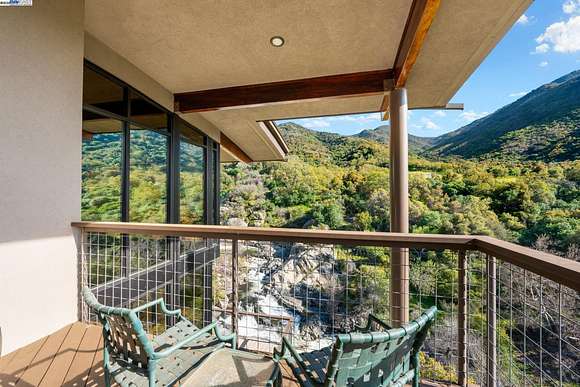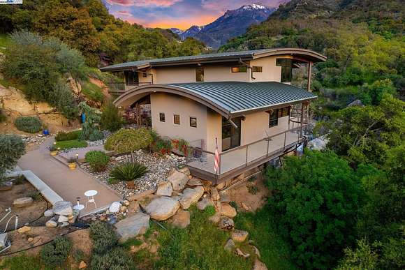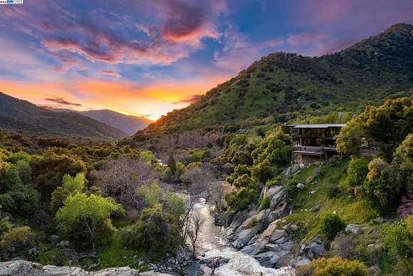 Nestled along the South Fork of the Kaweah River near Sequoia National Park, this extraordinary estate offers unmatched serenity and investment potential. A 22-ft cascading waterfall flows into private swimming ponds, creating a true oasis on 43+ acres. Perfect as a luxury vacation rental, boutique lodge, corporate retreat, or entertainment venue, this 3,500+ sq. ft. steel-framed masterpiece features three en-suite bedrooms, each with a viewing deck, plus a versatile multi-purpose room/office that could serve as a 4th bedroom. Floor-to-ceiling gold reflective windows showcase breathtaking views of the waterfall, river & mountains. The grand family room stuns with vaulted wood ceilings, solid oak flooring & a 24-ft stone fireplace. A chef's dream kitchen boasts a massive stone island, top-tier appliances & a walk-in pantry. This extraordinary property offers sustainable luxury, with a 400-ft private well, a deeded flume for a reliable water & potential electricity source & owned solar panels with a transferrable 25-year warranty feeding directly into the grid. Whether you're seeking a private sanctuary, a Luxury investment property or an unforgettable event venue, this estate is a rare opportunity to own an exclusive retreat in one of the most breathtaking locations imaginable!