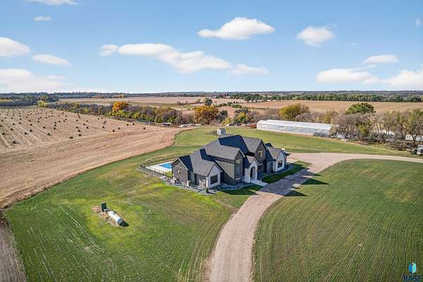 Where Architecture Meets Horizon. Set against breathtaking, uninterrupted views, this extraordinary six-bedroom, six-bath home is a masterclass in intentional design, refined materials, and seamless indoor-outdoor living - custom built by Aaron Krumvieda Construction with craftsmanship evident at every turn. The living room commands attention with a dramatic 16-foot vaulted ceiling and a floor-to-ceiling stone fireplace wall wrapped in custom limestone - a striking architectural focal point that anchors the space in warmth and scale. Ten-foot ceilings throughout the main level enhance the openness, while engineered wood flooring provides a sophisticated and cohesive foundation. The kitchen is both architectural and exceptionally functional, featuring a fully paneled SubZero refrigerator and two paneled Fisher & Paykel drawer dishwashers - a rare and highly desirable luxury. A beautifully appointed butler's pantry, complete with a separate walk-in food pantry, allows for effortless entertaining while keeping the main kitchen pristine. The primary suite offers a true retreat experience. A freestanding soaking tub creates a sculptural centerpiece, while the zero-entry shower with rain head delivers spa-level comfort. Every finish has been curated for timeless appeal and enduring quality. Outdoor living is nothing short of spectacular. A 40' x 20' heated pool is surrounded by pristine turf, creating a polished, low-maintenance resort setting that is as functional as it is beautiful. A dedicated pool bath adds convenience, while the expansive views provide a stunning natural backdrop for unforgettable evenings and effortless entertaining. Built slab-on-grade with a dedicated utility and shelter space below, and finished with LP SmartSide siding for durability and performance, this home balances architectural presence with long-term efficiency. Private. Elevated. Designed to Impress.