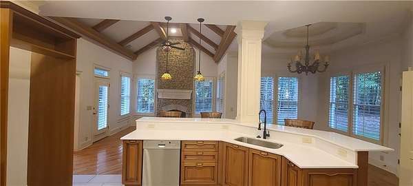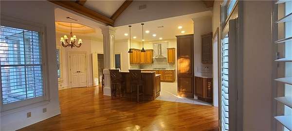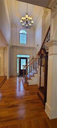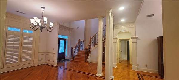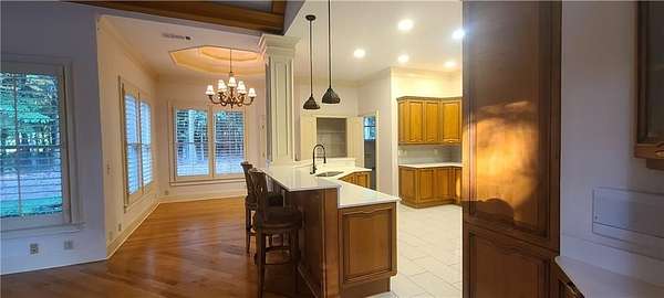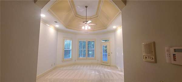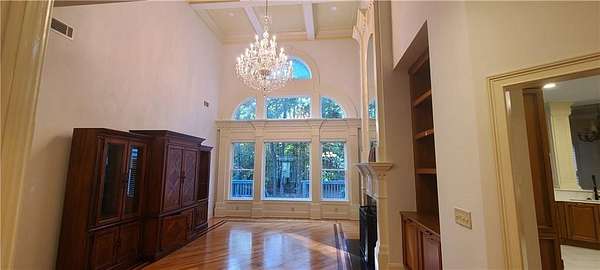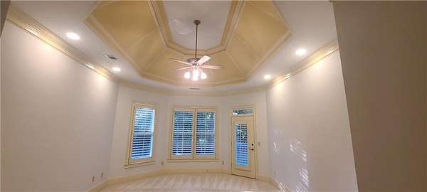 - Central Vacuum, Coffered Ceiling(s), Crown Molding, Entrance Foyer, Entrance Foyer 2 Story, High Ceilings 9 ft Lower, High Ceilings 9 ft Main, Recessed Lighting, Sound System, Tray Ceiling(s)