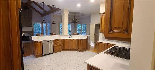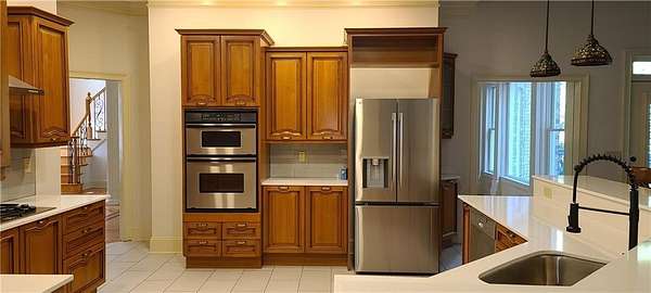 - Dishwasher, Disposal, Double Oven, Gas Cooktop, Microwave, Refrigerator