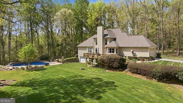 Welcome to 4829 Old Pendergrass Rd, an extraordinary custom-built retreat set on over 18 acres of serene, private land. Tucked deep into the woods, this property offers unmatched peace and seclusion while still being just minutes from restaurants and shops, providing the perfect balance of convenience and privacy. The home features a desirable master suite on the main level, complete with an oversized sitting room for added comfort and flexibility. Upstairs, the additional bedrooms boast spacious closets, offering ample storage. Two bonus rooms provide endless possibilities for a home office, gym, recreation room, or flex space to suit your needs. Natural light and thoughtful design create a warm, inviting atmosphere throughout. Enjoy outdoor living at its finest with both an upper deck and a lower patio, ideal for relaxing or entertaining. The wide front porch is perfect for hosting gatherings or simply taking in the peaceful surroundings. Step outside to your own private oasis, complete with a custom pool and plenty of surrounding yard space. The property also features two creeks, adding to the natural beauty and tranquility of the land. The unfinished basement is already framed and ready for your personal touch and includes a convenient half bath ideal for use as a pool bathroom. An additional garage space in the basement provides excellent storage for outdoor equipment, tools, or recreational vehicles. The land itself is truly breathtaking, featuring a private road that winds through the property and multiple cleared areas ready for expansion. With no restrictions, the possibilities are endless...build a second home, create a workshop, or design the lifestyle you've always envisioned. This rare property combines privacy, versatility, and natural beauty...an exceptional opportunity you don't want to miss.