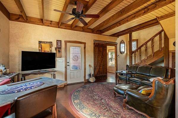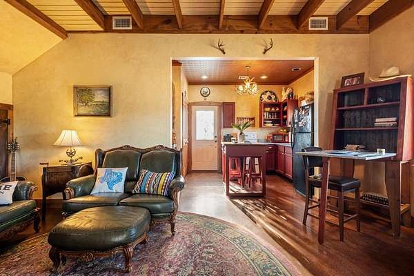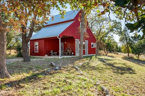 Exceptional income-producing opportunity just minutes from Fredericksburg! Hope Farm is a private 13.89-acre multi-unit retreat featuring four separate rental cabins totaling over 4,300SF, a stunning gathering pavilion with massive stone fireplace and outdoor kitchen, and turnkey infrastructure for a successful B&B or short-term rental operation. The majority of furnishings convey. The cabins offer 6 bedrooms plus additional loft sleeping spaces for flexible guest accommodations. Three water wells and two septic systems support the property's multi-structure layout. Mature oaks, meandering paths, and a peaceful fish pond create a true Hill Country setting. Small barns and sheds provide space for hobby farming. Gated for privacy and ideal as an investment property, family compound, or second-home retreat in one of Texas' most sought-after destinations.