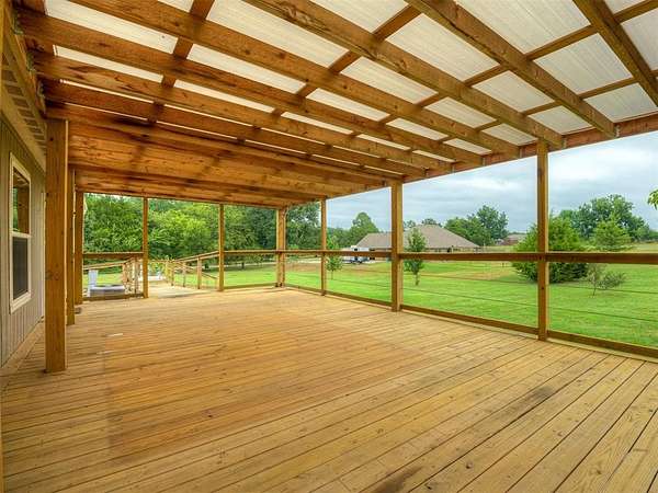 OMG this house and all the additions to it are what living on land dreams are made of. This house is a Palm Harbor permanent built Modular home on a permanent foundation. ( this is not a mobile home) Do you long for nights on your extended front porch or back deck enjoying your favorite seasons? Look no further. The new added back deck is a dream for any season lover to sit either with a cold glass of lemonade and enjoy summer nights or by the fire pit in the cold or cooler evenings with some hot cocoa. The open floor plan is enormous and over looks the amazing back deck to see views of deer, birds, butterflies and all the amazing nature. Extra enormous family room/living room for those nights you want to all watch a movie or binge some netflix. The primary suite is simply divine. Wait until you see the primary bathroom and double closets and double vanities. Dreamy for sure! Do you love an insulated shop/garage with commercial grade electrical big enough to house an RV? Well, this house has that. Are you a gardener? This house has the sweetest greenhouse to house and cultivate all your favorite flowers and plants and herbs. House has an osmosis water system for great water. This home has everything you could dream of for your pickiest of buyers. Come make this house your home to start the fall season in. Unrestricted acreage and all animals are ok. Property includes 2 lots