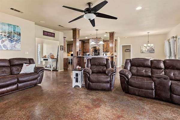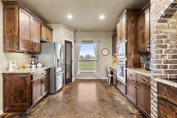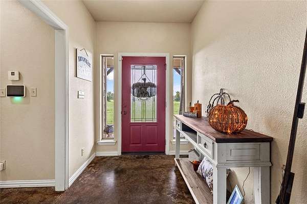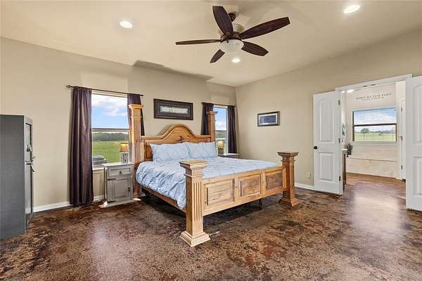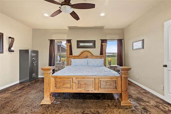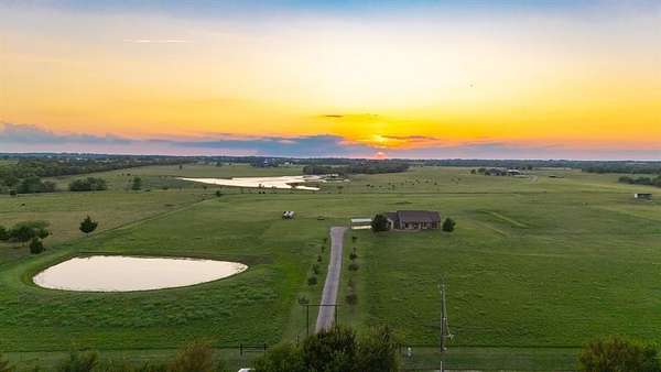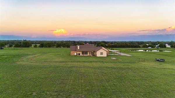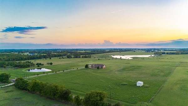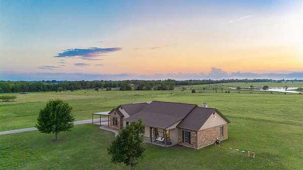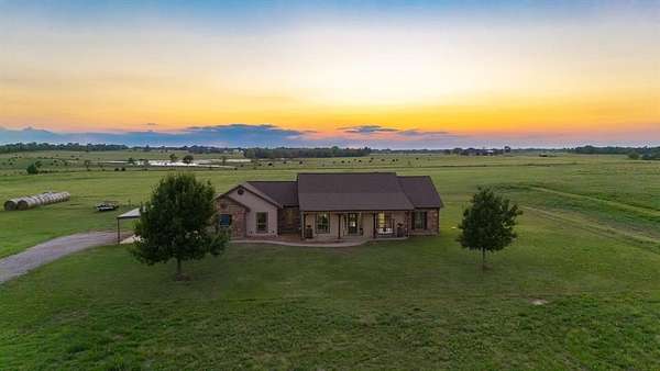 Enjoy the breathtaking views and wide-open skies from this stunning East Texas Ranchette sitting on 12.54 acres in sought after Celeste ISD! Property is fully fenced with a large pond ready for your animals with plenty of room to roam! Inside you will find a spacious open floor plan with tall ceilings throughout! The large family room centers around a raised brick hearth fireplace with cozy gas log set and durable stained concrete floors! The Kitchen boasts custom Knotty Alder Cabinets, a large-curved breakfast bar, walk-in pantry, electric cooktop framed by a striking arched brick surround, built in desk area, and a functional layout that makes every day cooking simple! The primary suite is oversized with enough room for a sitting area, reading nook, or even a small workspace! The primary bathroom includes a walk-in shower, dual sinks, jetted bathtub, linen storage, and two spacious walk-in closets! Split bedroom floorplan with generously sized secondary bedrooms ideal for kids or guests! Drink your morning coffee from the lovely front porch and watch the sun rise! Wind down, grill out, and gather with friends from the oversized back patio and enjoy the sunset view across panoramic skies! This property has so much to offer and is ready for its new owners! Don't miss out this one, it won't last long!
