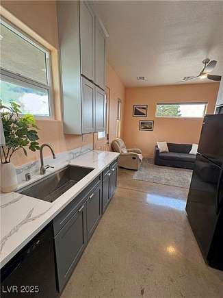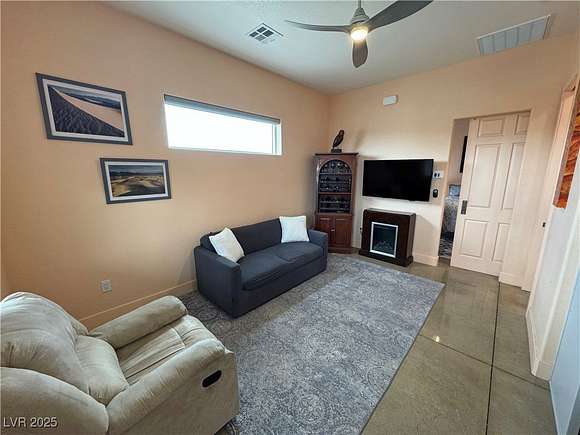 A perfect desert retreat in Pahrump! Unique 30' by 30' oversized garage with a move-in ready attached casita that boasts 1-Bdrm, 1-Bthrm and a full kitchen. Relax while building your new home on a fully fenced 1.1-acre lot with breathtaking mountain views. To assist with the building process, a 1500-gallon septic system and 400 Amp electrical panel are in place for your future home. Need more space while you build? There's a 1-bdrm fifth wheel trailer, in place, with full hookups and a 30-amp plug and an additional 50-amp RV hookup for guests or a second RV. The garage has plenty of space for vehicles, storage, workshop, and high ceilings for a mezzanine. The garden area has raised beds and an orchard with fruit trees. Additionally, there's a 40ft container and a shed that contains a fully functioning well. This property provides space, functionality, and a relaxed lifestyle. Looking for a full-time residence or a vacation home? This property has it all! Schedule a showing today!