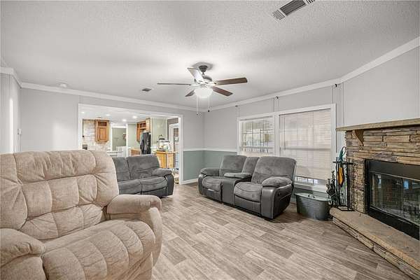 Charming 5 ACRE retreat in the country!! This 4 bedroom 3 bath 32'x80' Manufactured Home was built in 2021 and is a whopping 2500 square feet of living space. Situated on a scenic 5 acre lot, there is plenty of space for HORSES, chickens, goats or doggos. There is an above ground pool with a brand new linter, salt water pump and deck. Inside, the kitchen is extremely large with granite countertops, lots of cabinets and a range with a vented hood and a large island. The Owner's Suite boasts ample space for furniture and the bath has a walk in shower and a garden tub. There is also an OFFICE with a closet that could be used as another bedroom is needed. Looking out from the very large covered back deck, you'll see fruit trees and lots of lush trees that provide privacy. There is a 20x20 3 wall shop with a 12' opening and a new 2 car carport. The entire 5 acres is fenced with NO CLIMB FENCE and an electric gate will provide added security. Even though you're in the country, there is FIBRE INTERNET for added convenience. Come check out this amazing gem!